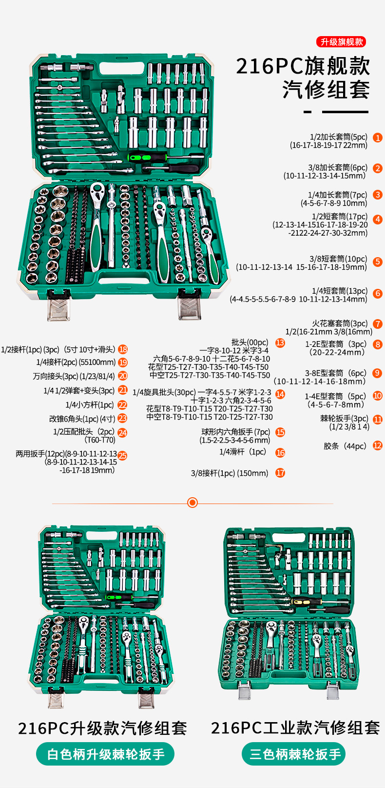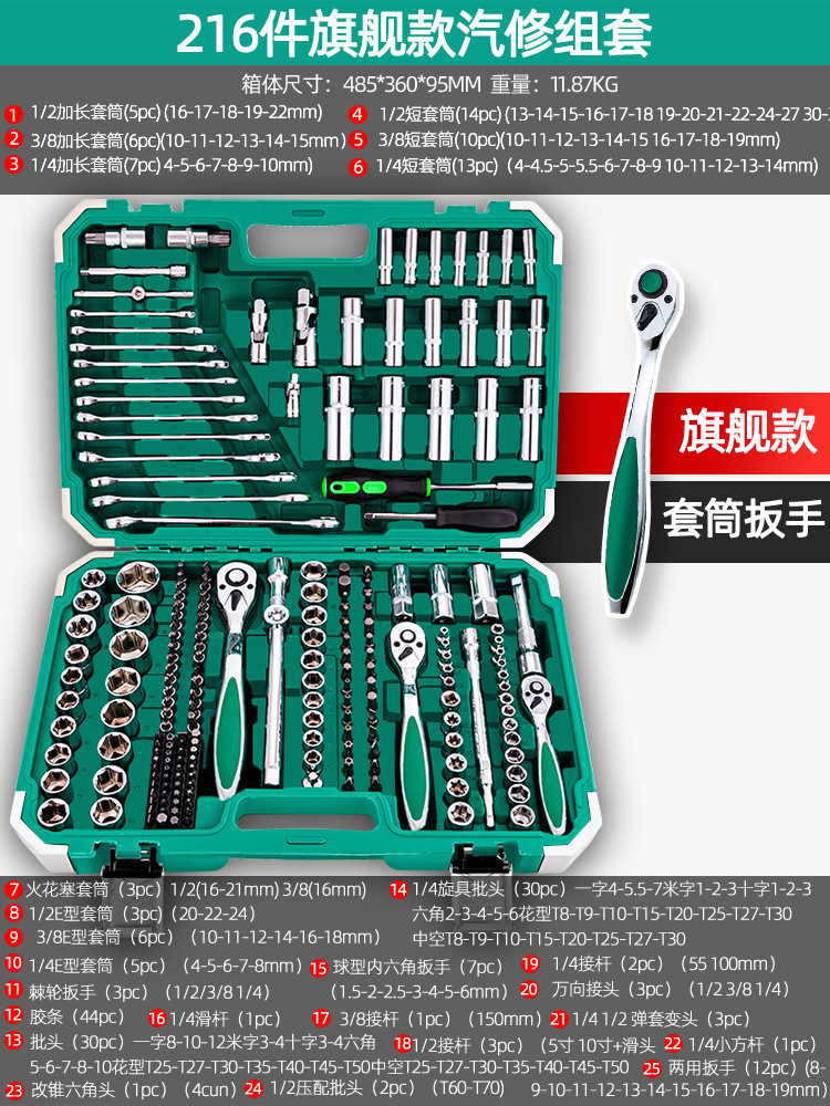 • 산업용 72톱니 곡선 핸들 자동 수리 216개 세트