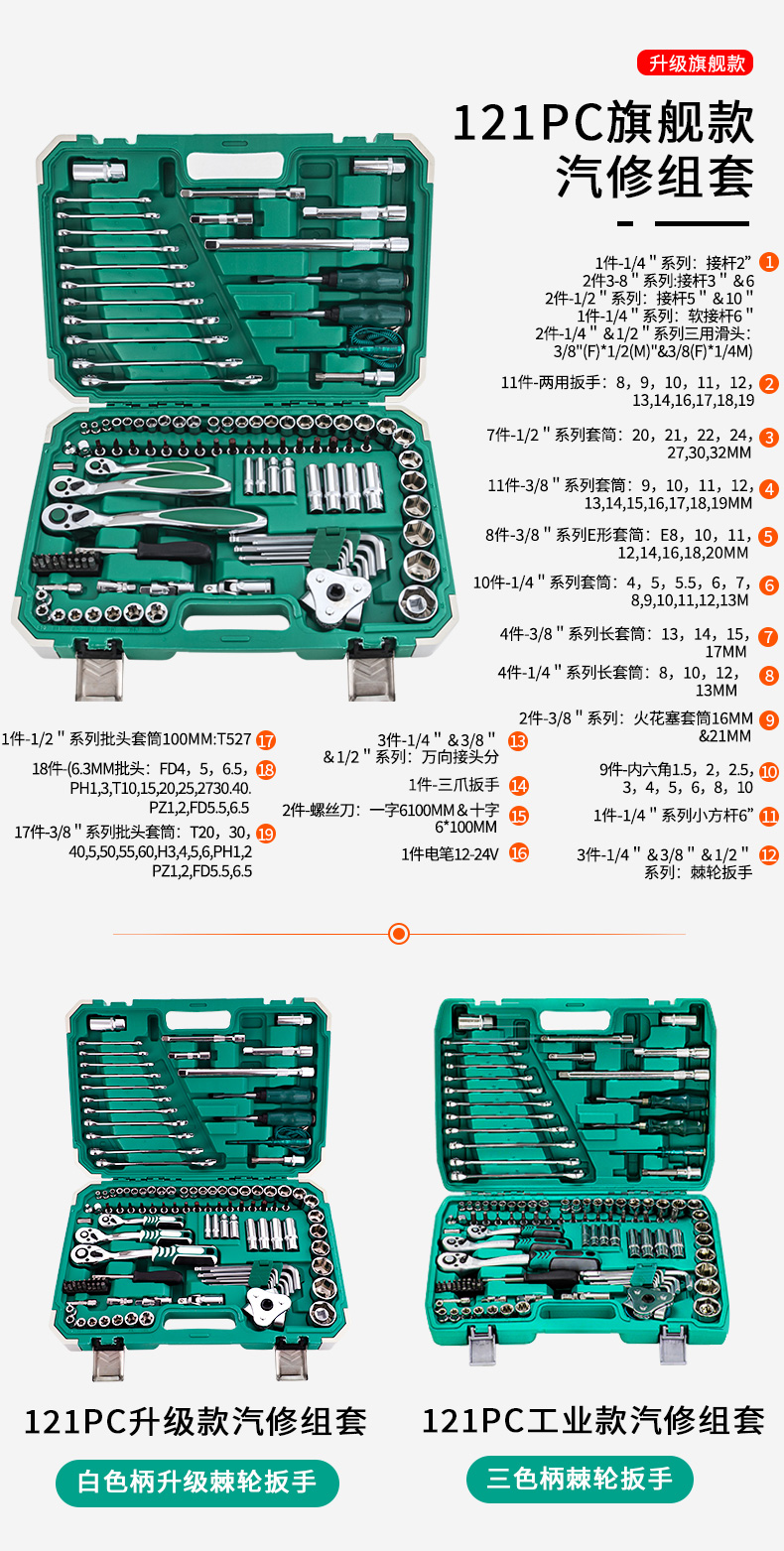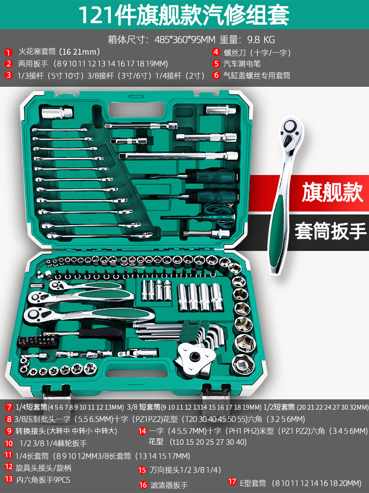 • 산업용 72톱니 곡선 핸들 자동 수리 121개 세트