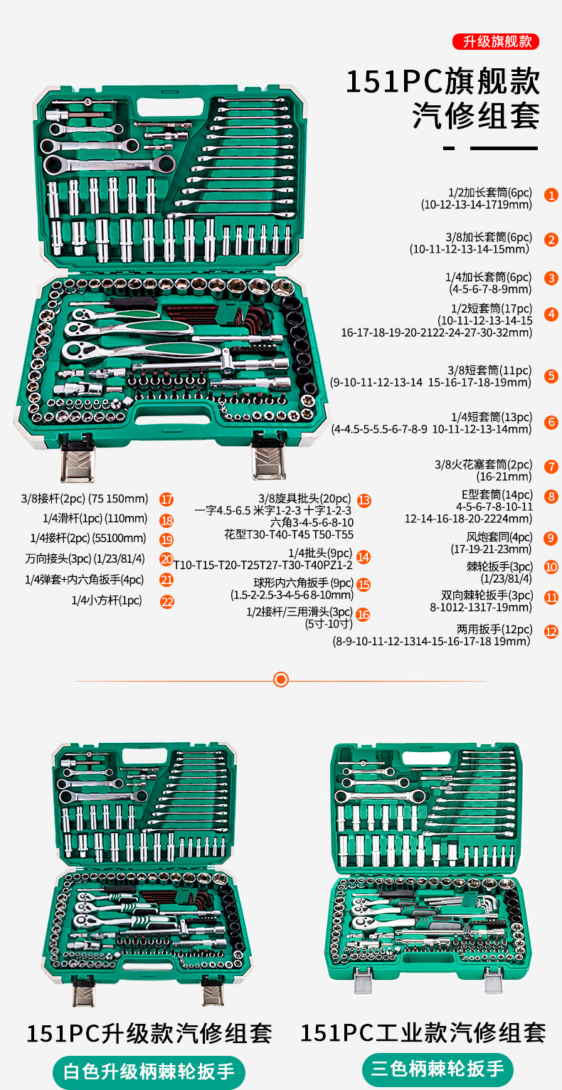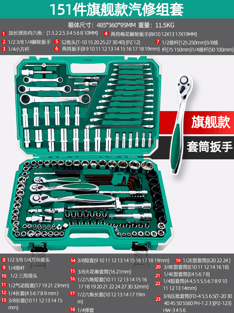 • 산업용 72톱니 곡선 핸들 자동 수리 151개 세트