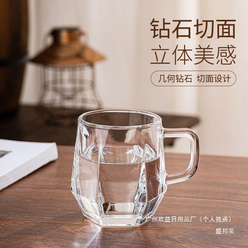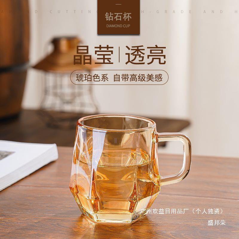 가정용 커피 육각형 Breeze 주스 무료 유리 거실 마시는 우유 컵 다이아몬드 핸들 인터넷 인기 기본스토어 가기