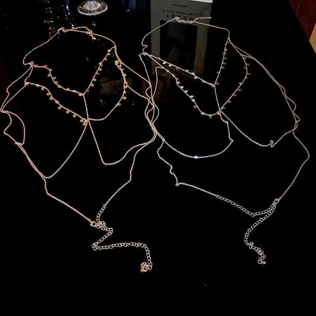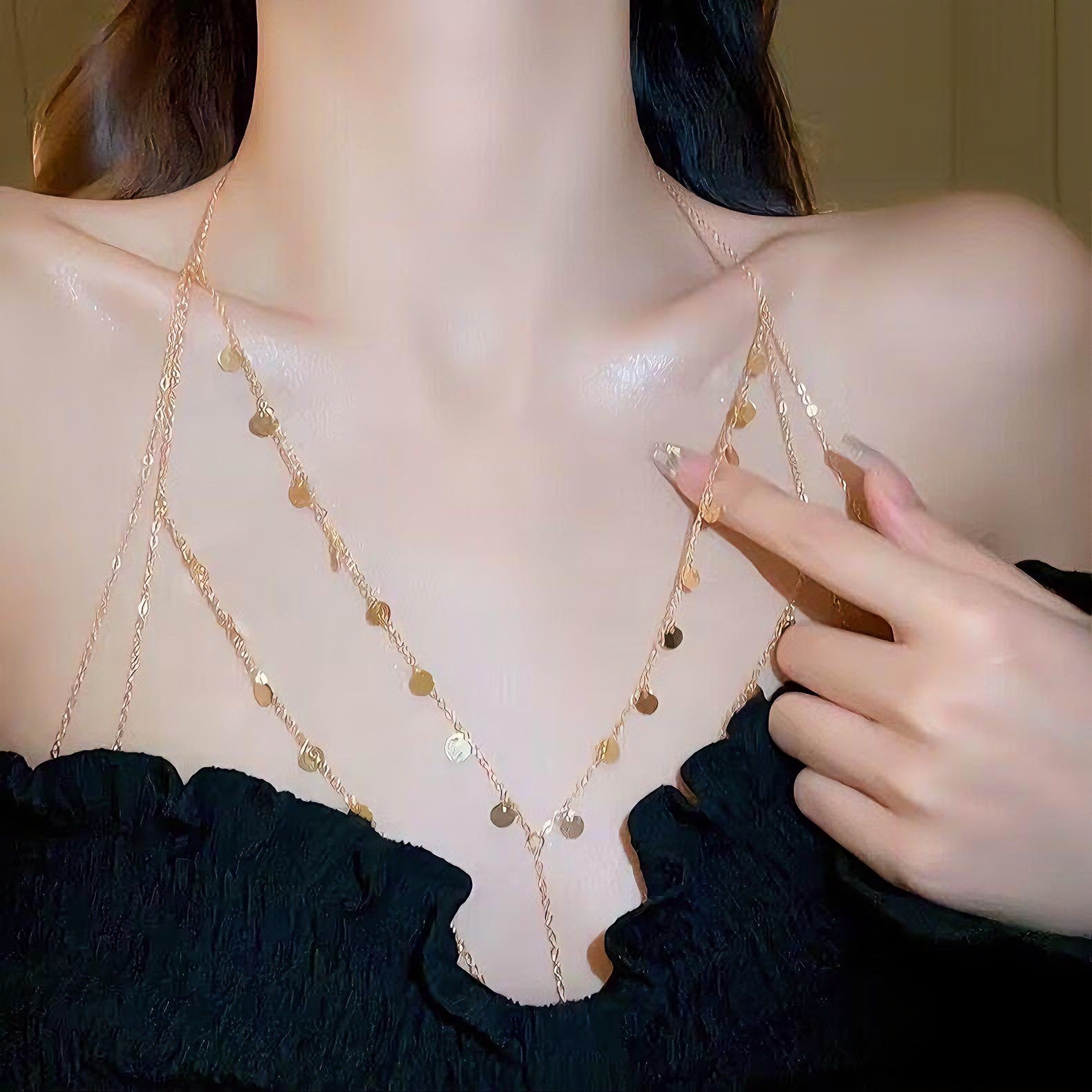 가슴 체인 바디 체인 섹시한 포크 체인 중공 스팽글 술 목걸이 보석 비키니 백 체인 홀터 액세서리