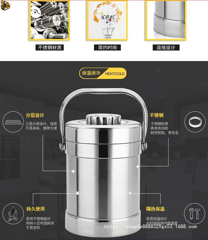 스테인레스 스틸 절연 도시락 레스토랑 호텔 절연 버킷 대용량 성인 도시락 3 층 진공 냄비 쌀 양동이스토어 가기