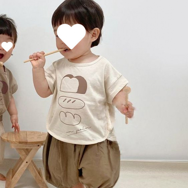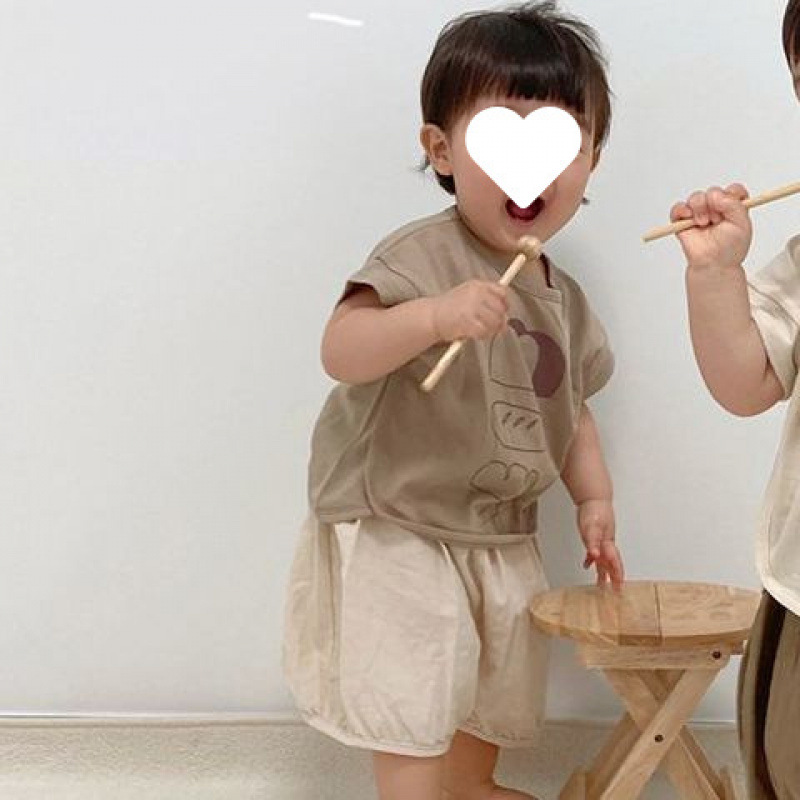 여름 얇은 남성과 여성의 베이비 풀오버 반팔 티셔츠 탑 유아 루즈 반바지 바지 한국어 버전 ins스토어 가기