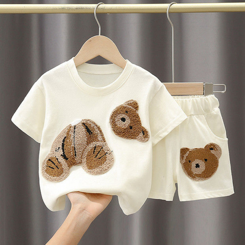 • 패치워크 곰돌이 반팔 슈트 오프화이트