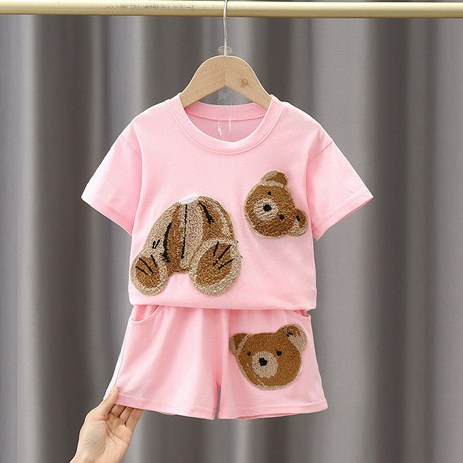 소녀 세트 여름 새로운 2025 여름 아기 투피스 만화 반팔 세트