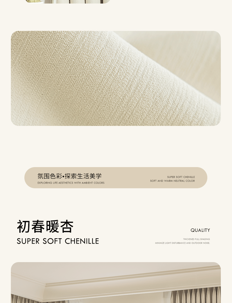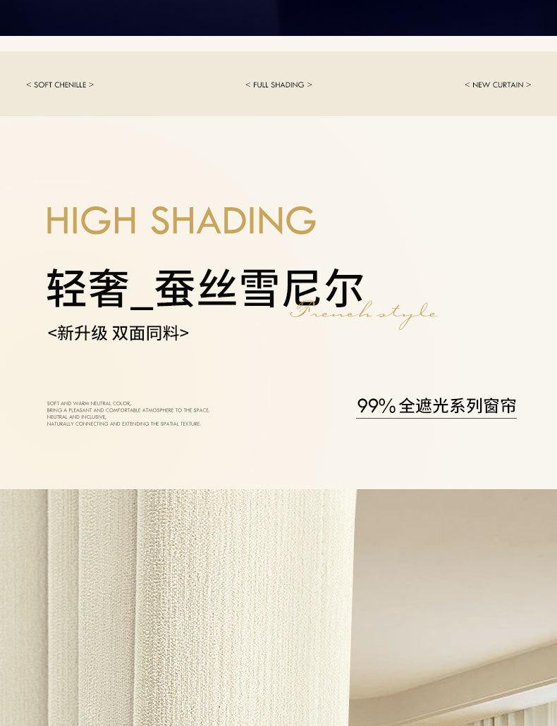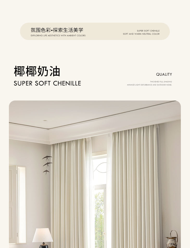 두꺼운 양면 셔닐 소음 차단 소흥 커튼, 암막 이중 레이어, 맞춤형 신상 크림 스타일 거실 및 침실용스토어 가기