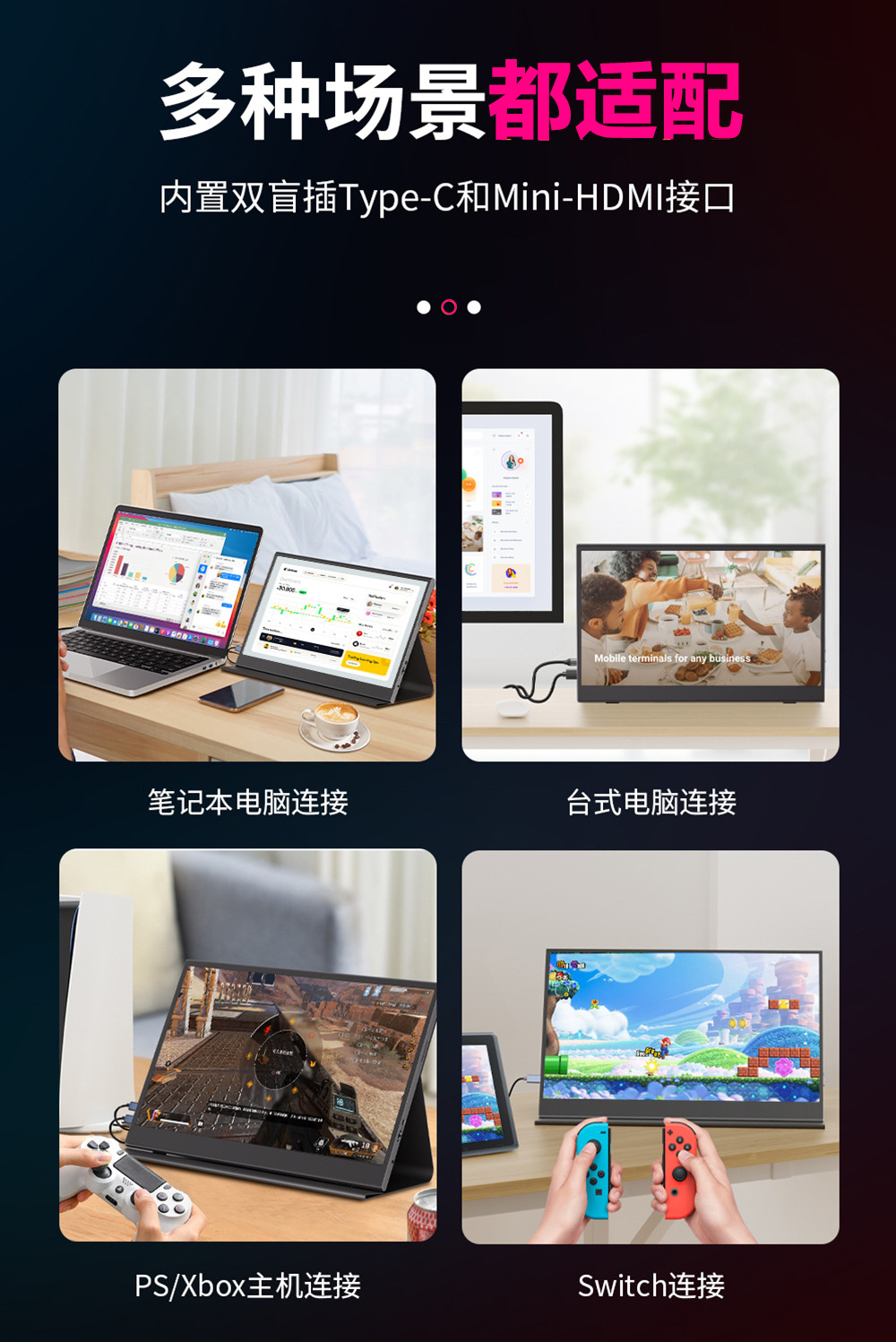 1080P 휴대용 디스플레이 15.6inch IPS 디스플레이는 태블릿, 휴대폰, 컴퓨터, 노트북, TypeC를 지원합니다.