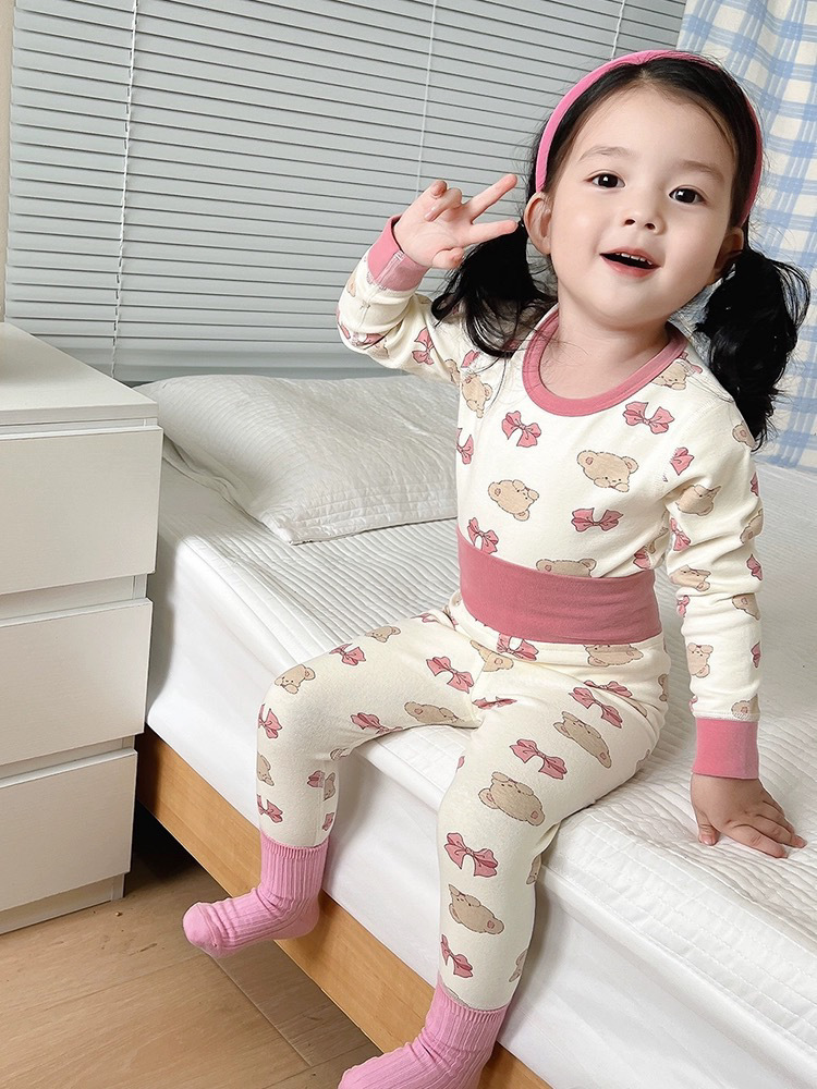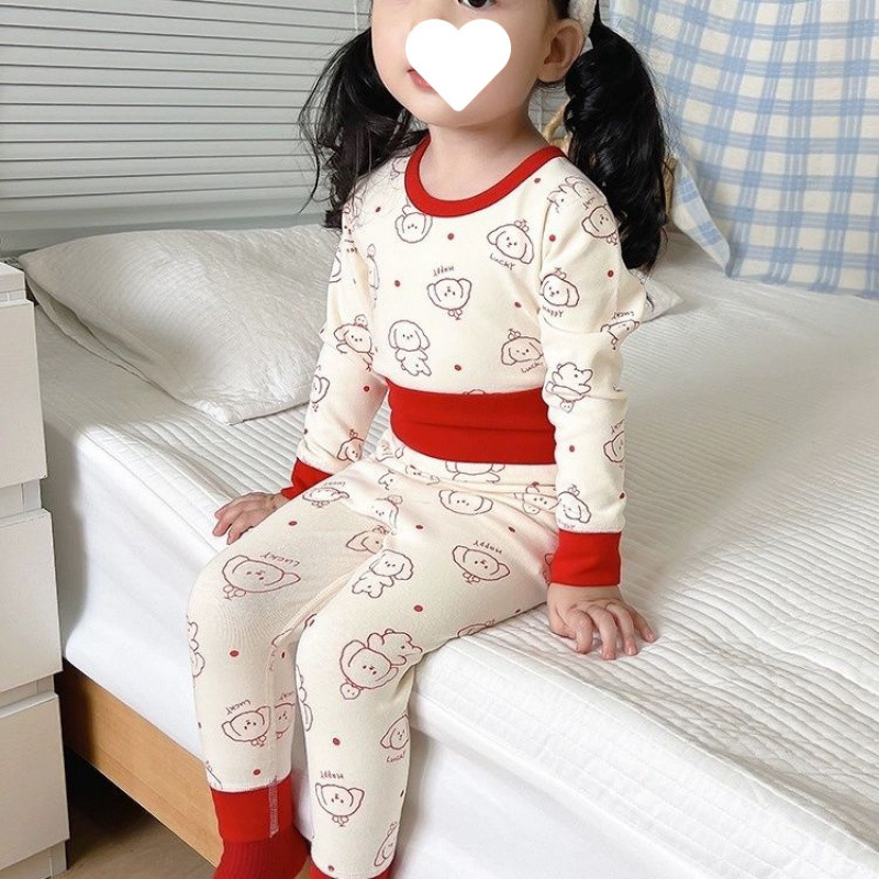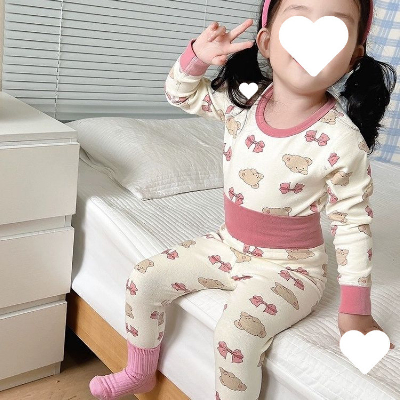 소녀의 집 옷 잠옷 가을과 겨울 아기의 높은 허리 배꼽 보호자 가을 바지 세트스토어 가기