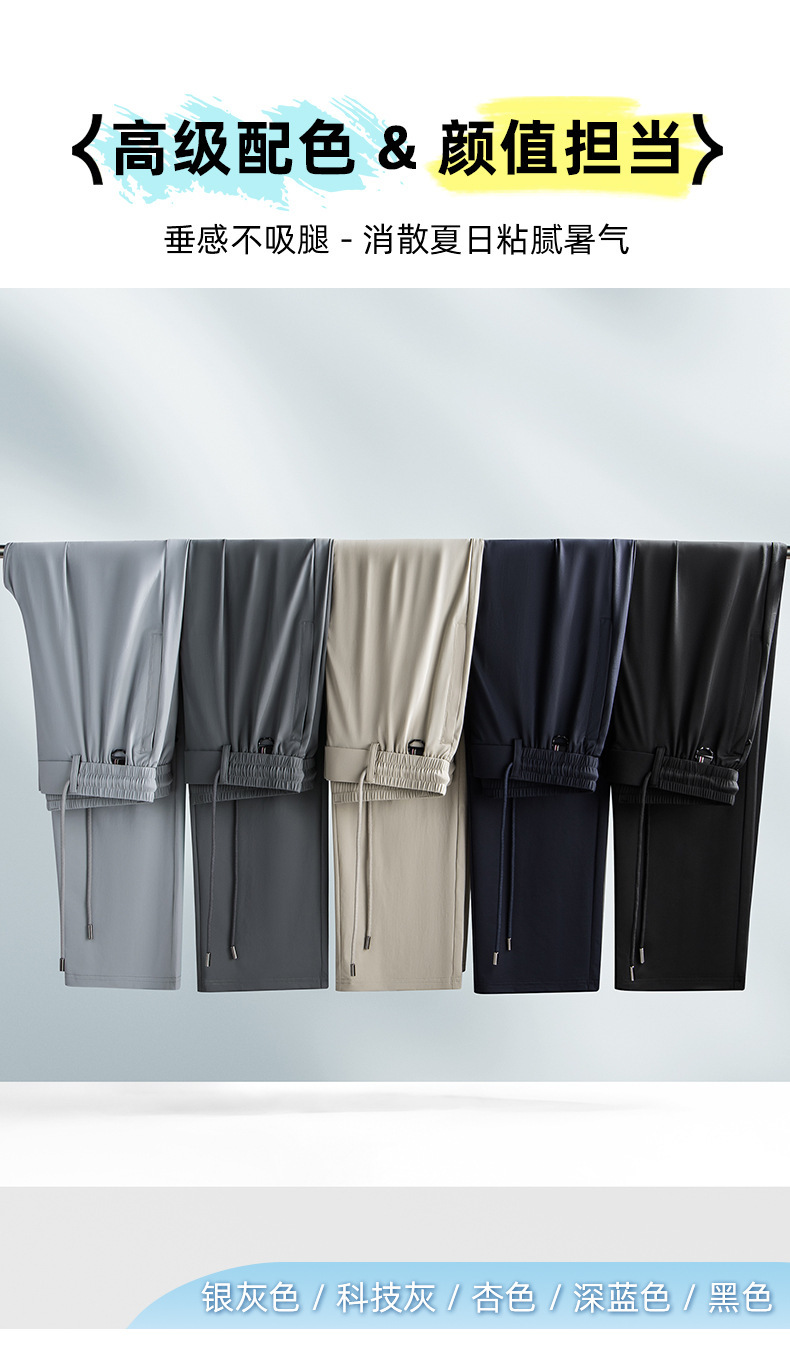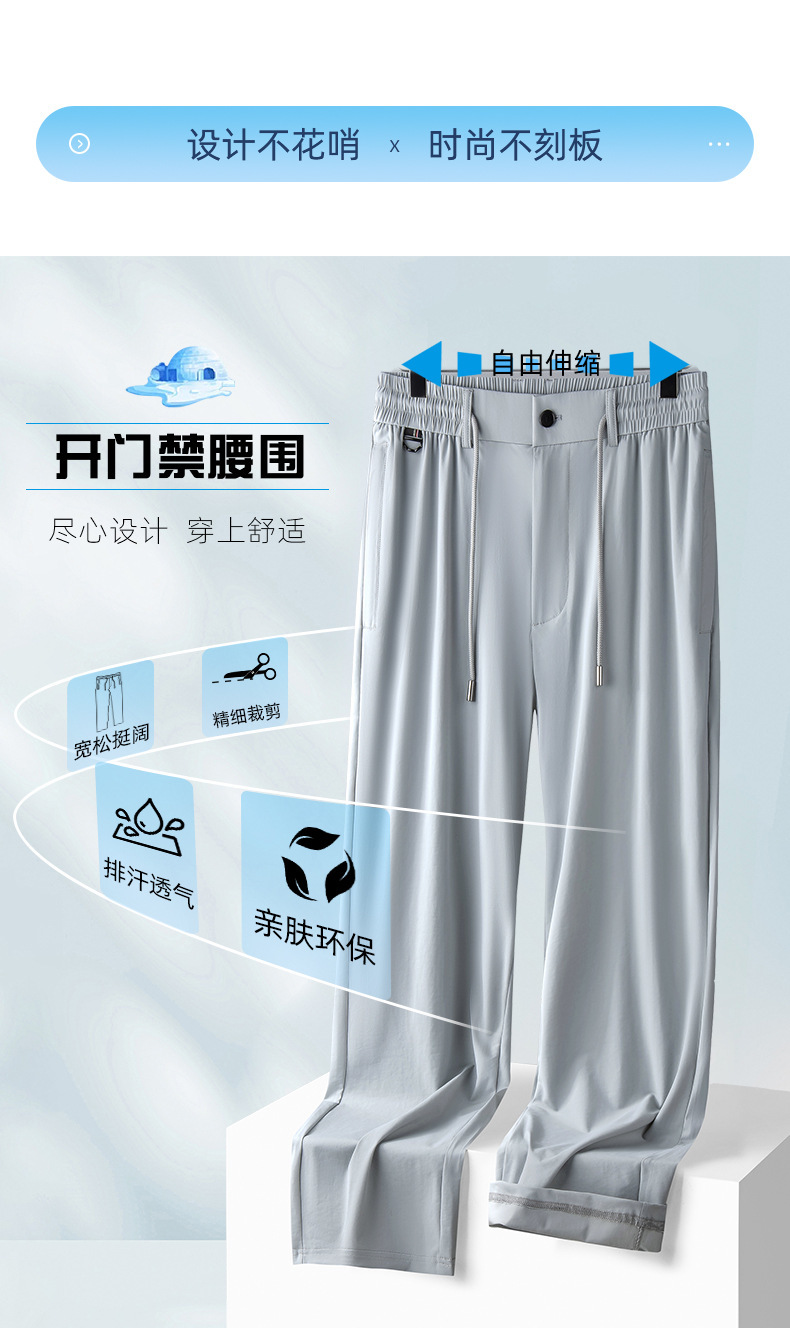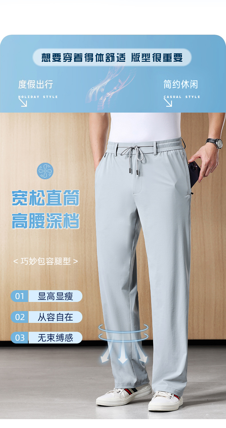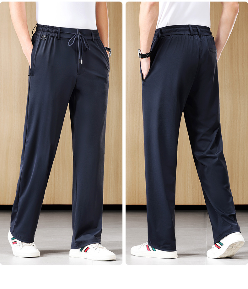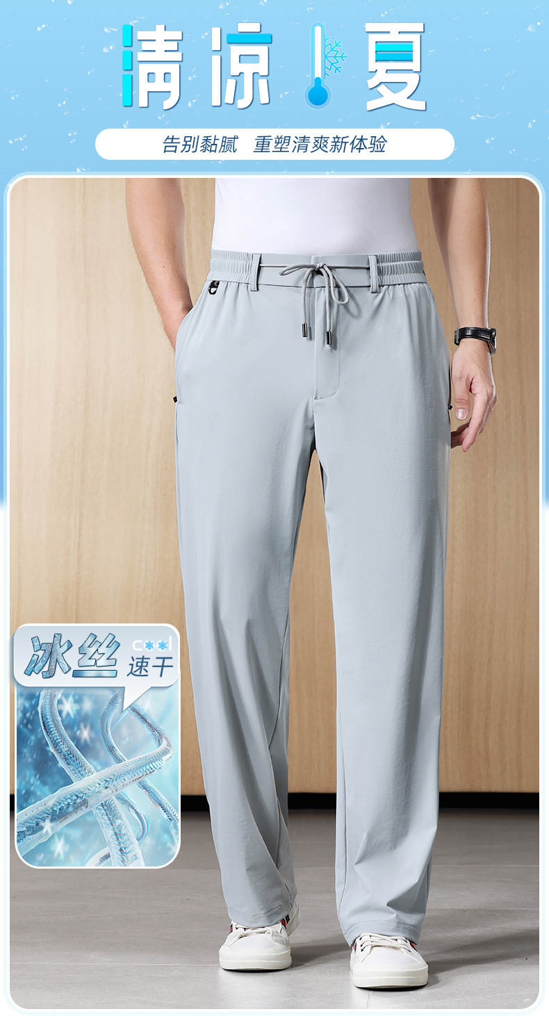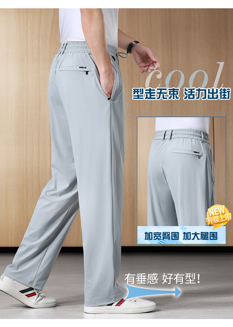 새로운 남자 아이스 실크 캐주얼 스포츠 바지 여름 얇은 남자 바지 느슨한 스트레이트 플러스 사이즈 바지스토어 가기