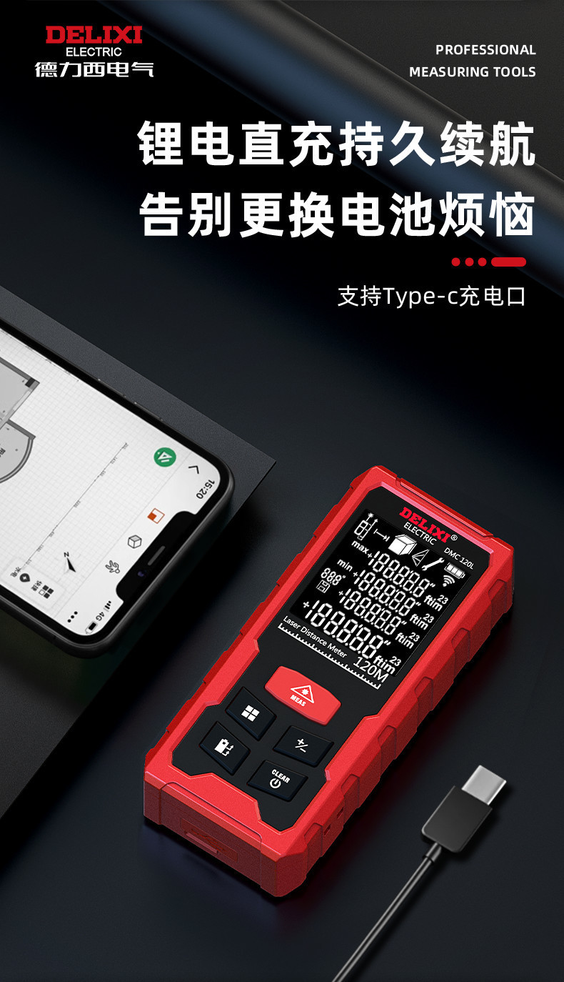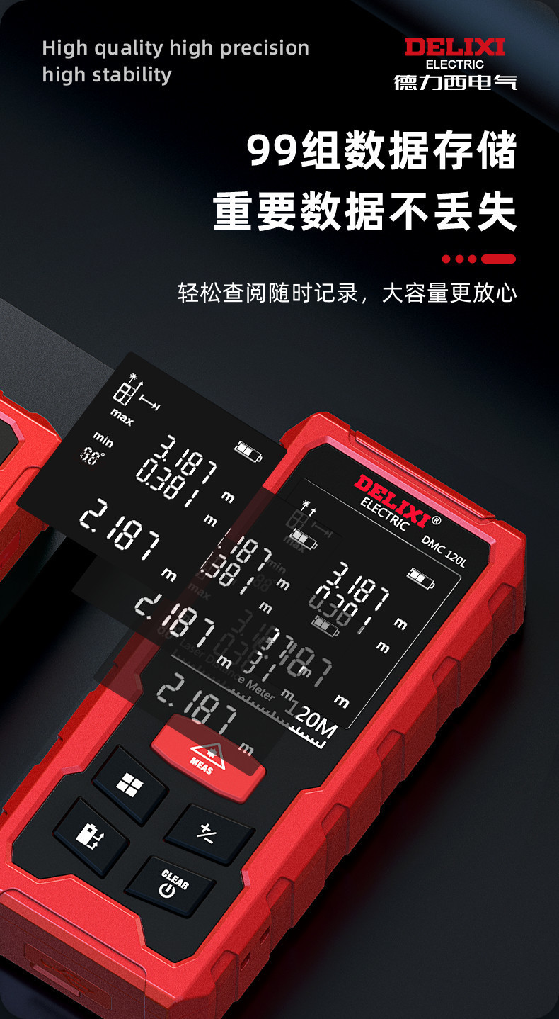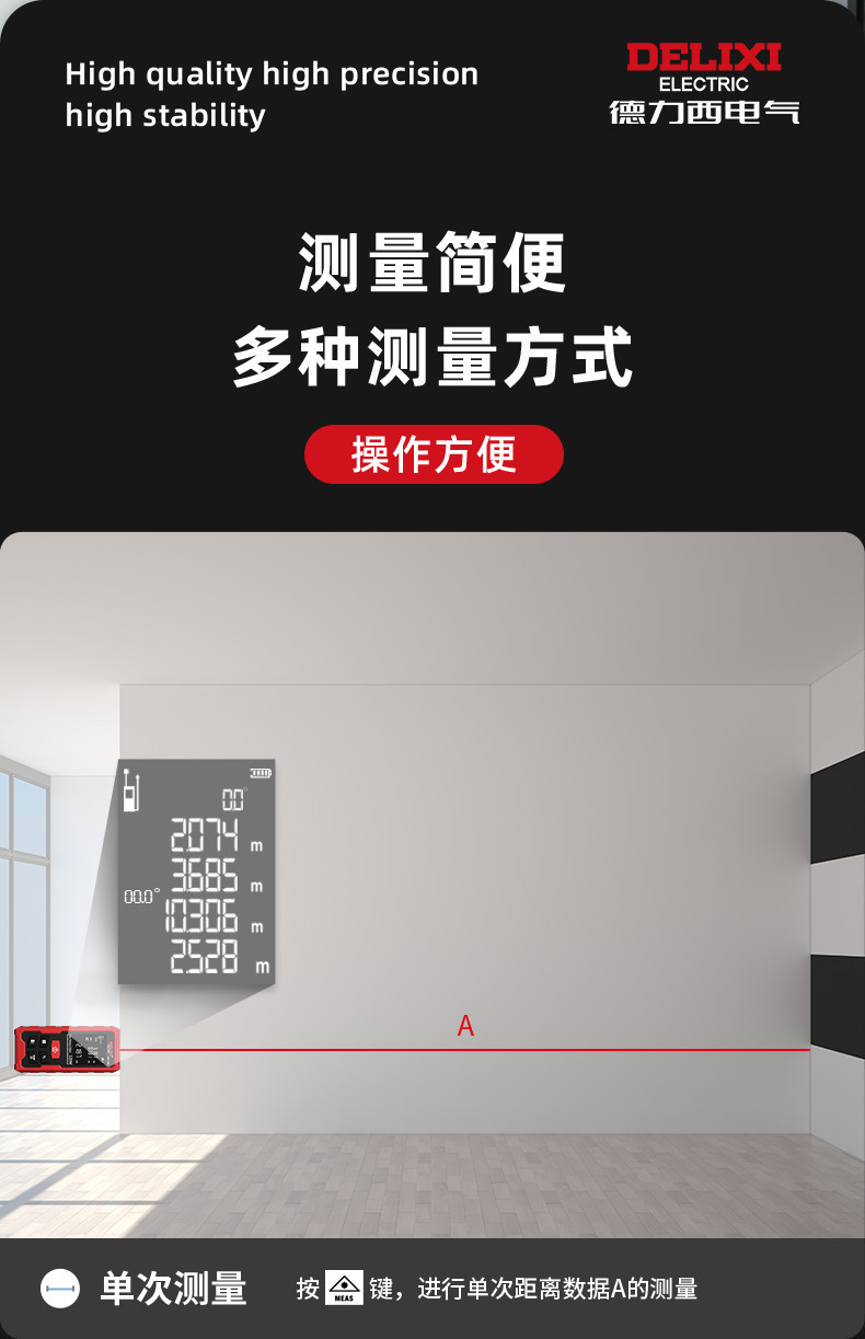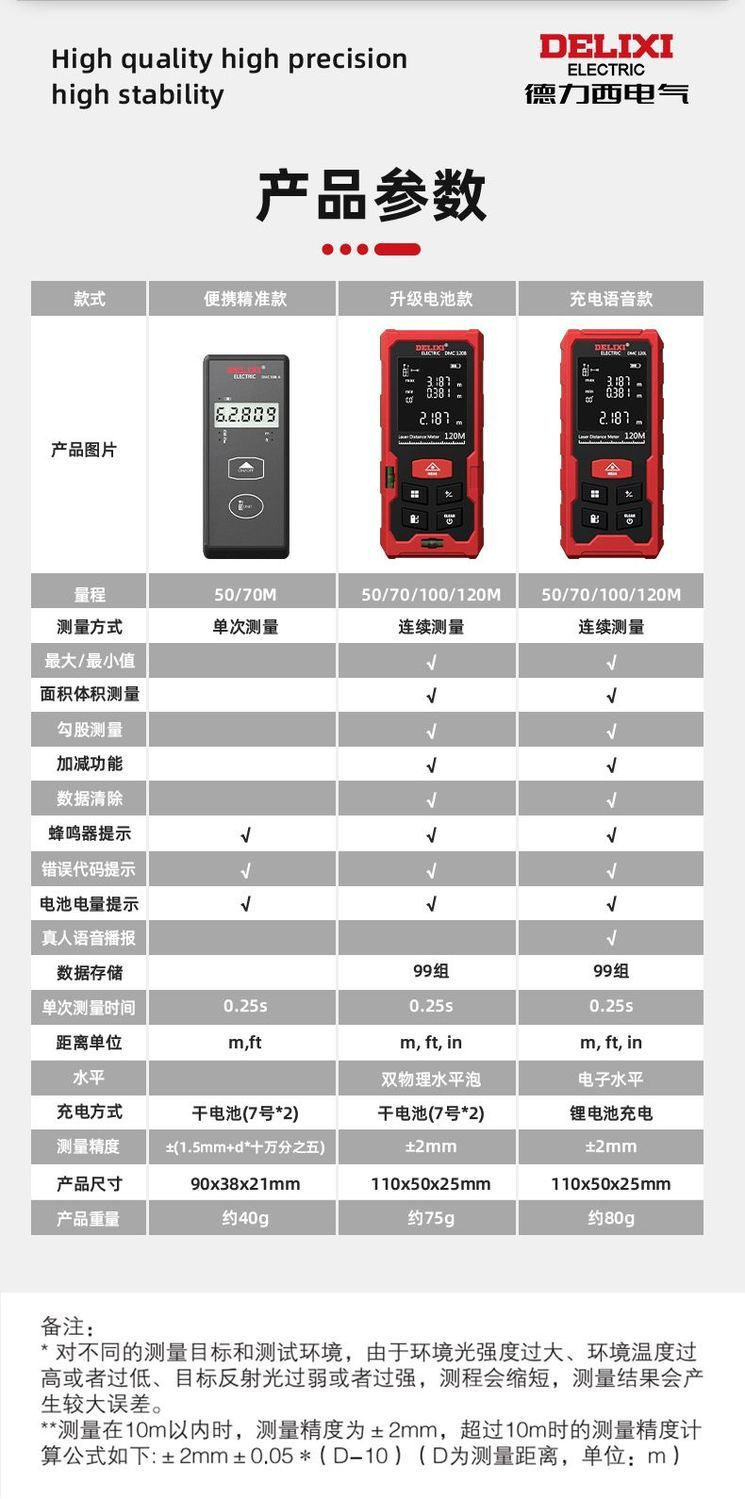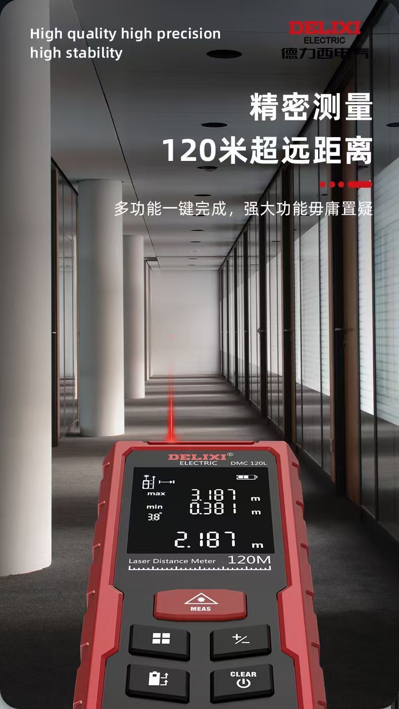 Delixi 레이저 거리 측정기 높은 정밀도 휴대용 적외선 측정 통치자 전자 통치자 측정 방 미터 거리 측정 장비스토어 가기