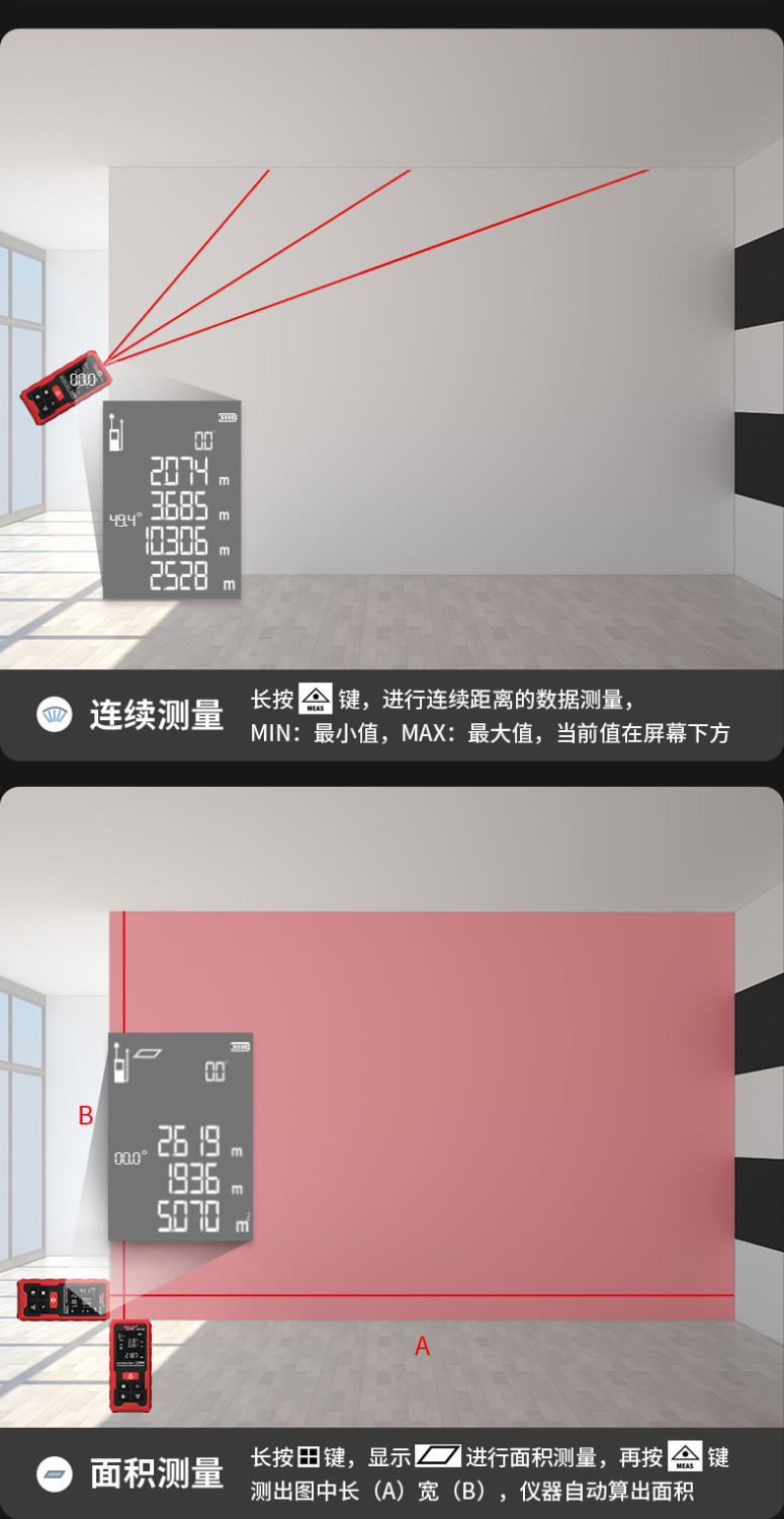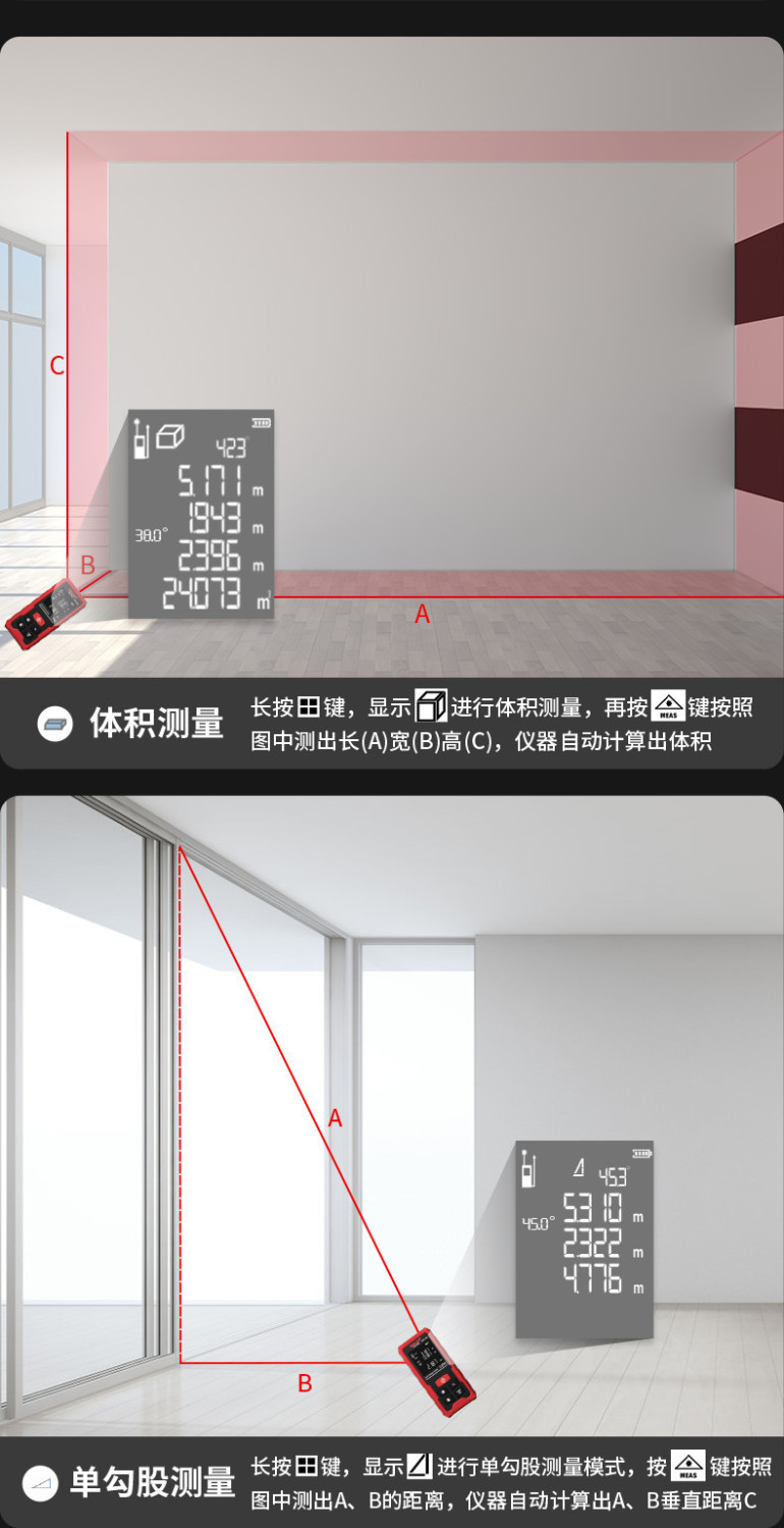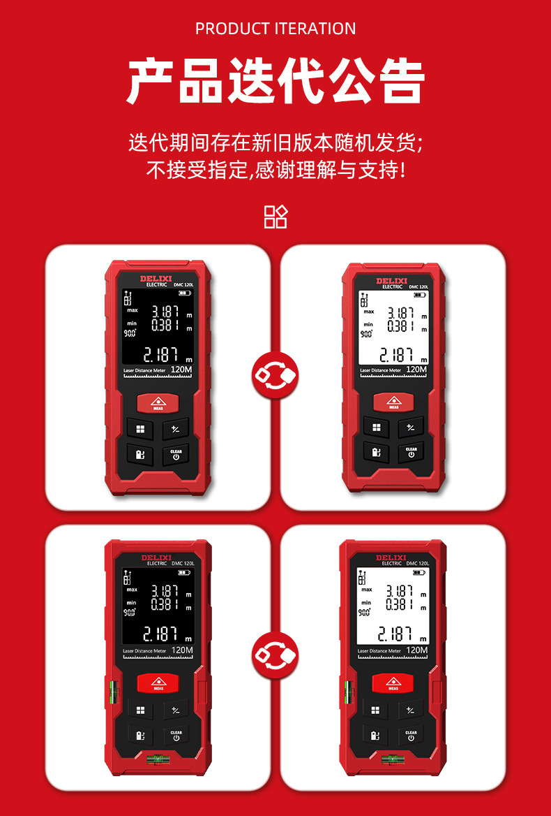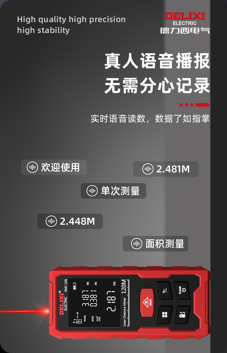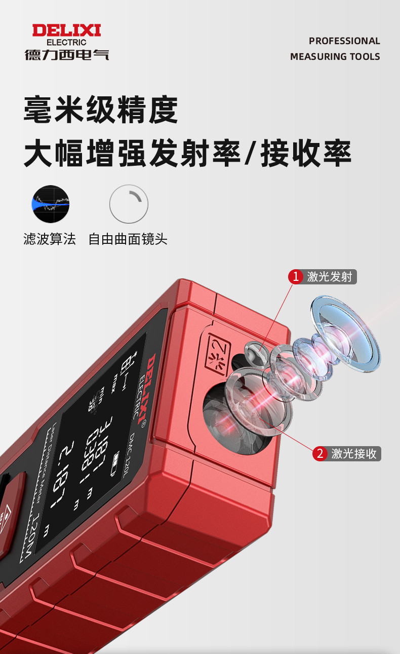 Delixi 레이저 거리 측정기 높은 정밀도 휴대용 적외선 측정 통치자 전자 통치자 측정 방 미터 거리 측정 장비스토어 가기