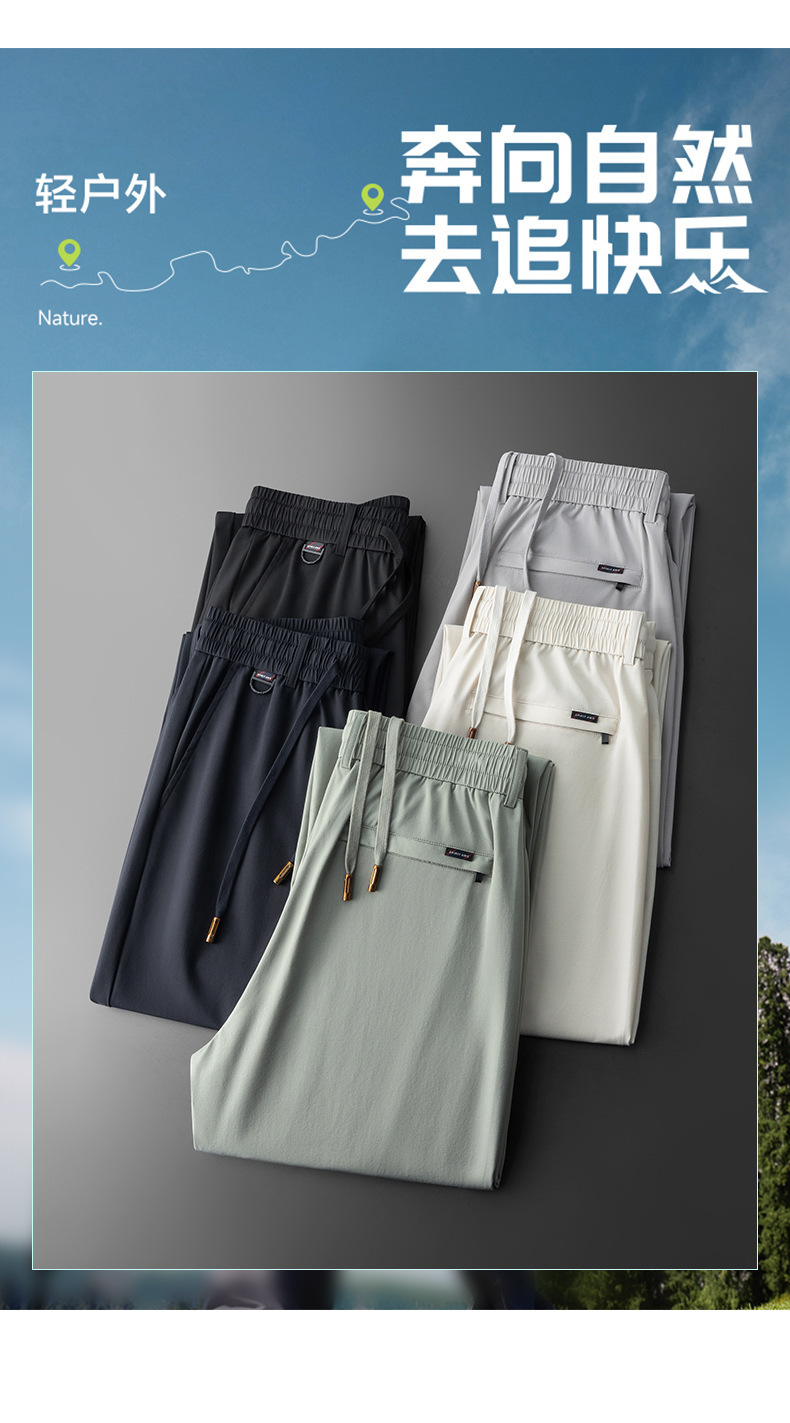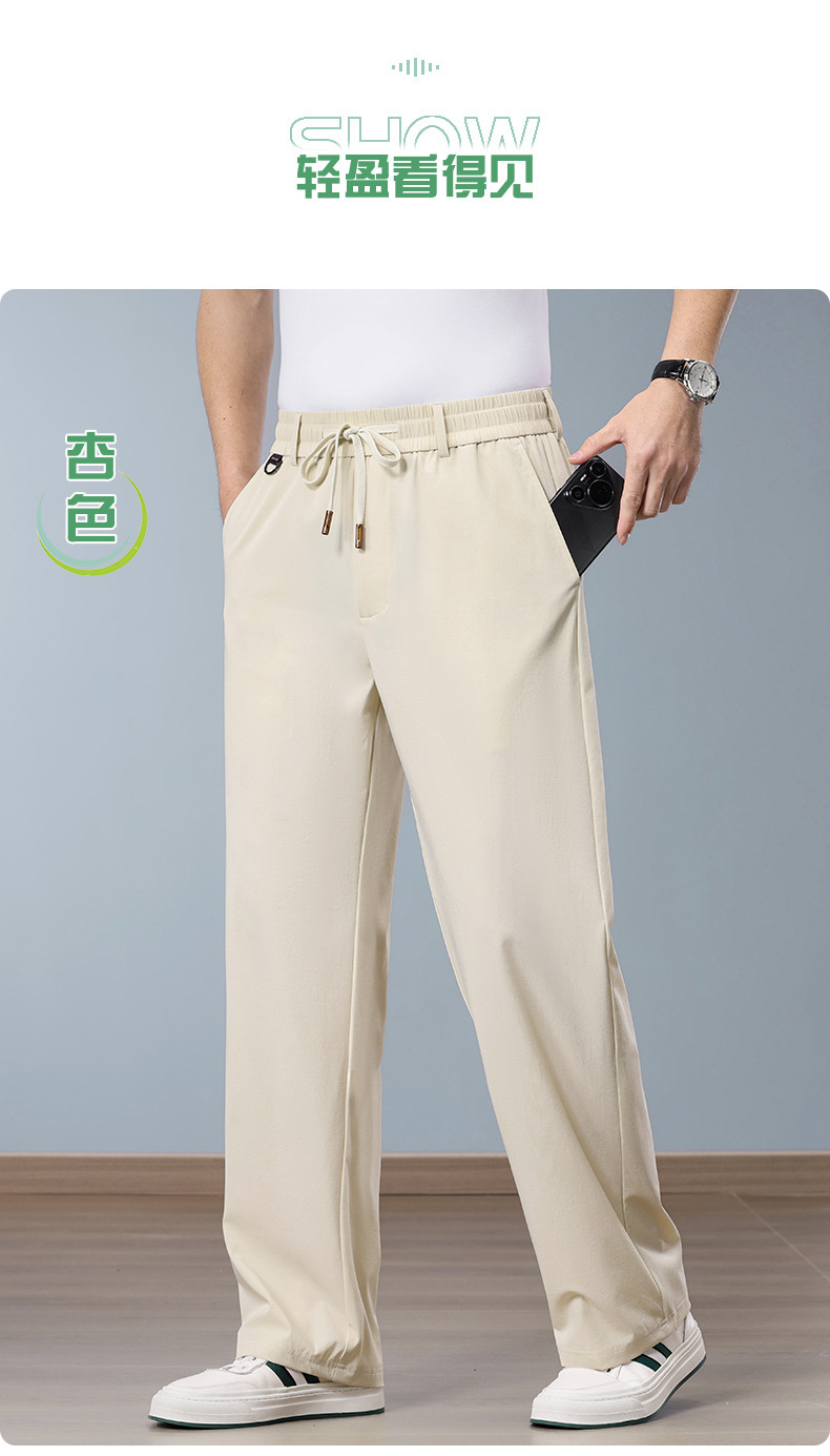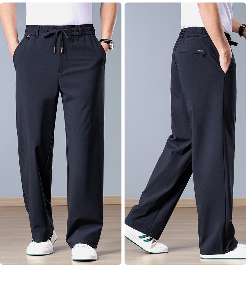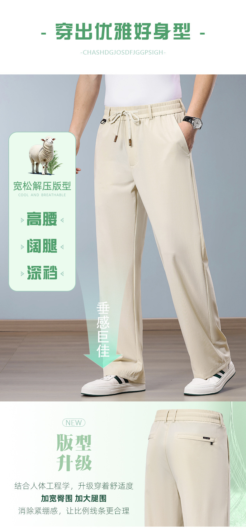 뽕나무 실크 넓은 다리 바지 남자 2025 봄 새로운 남자 캐주얼 바지 느슨한 중년 플러스 사이즈 스포츠 바지