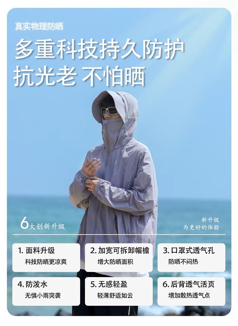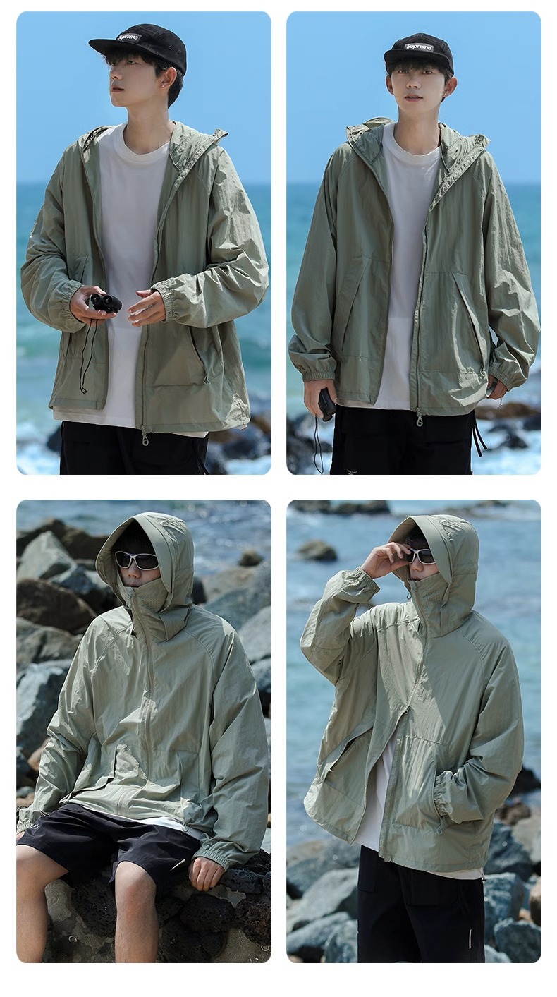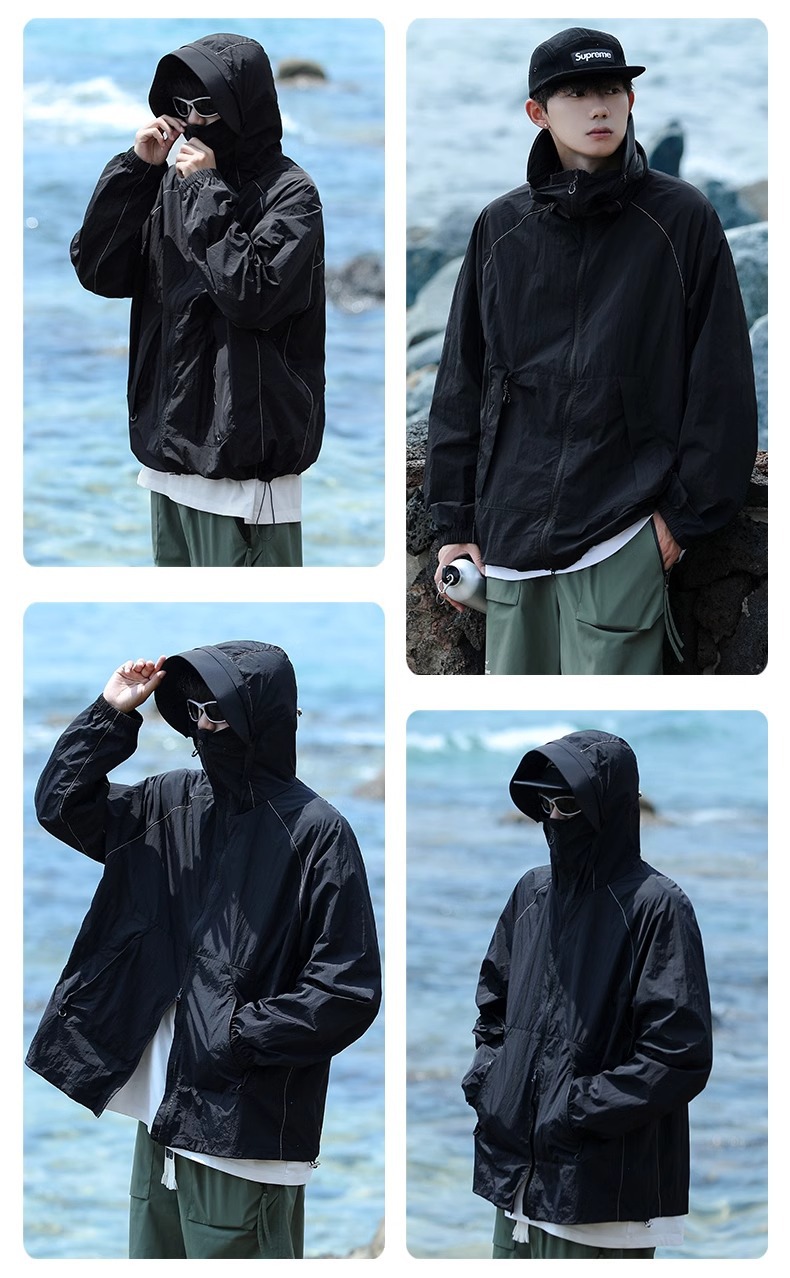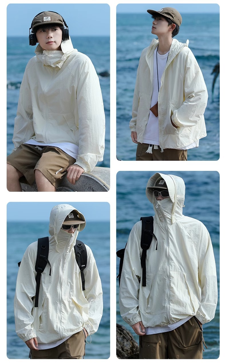 NASAUPF50 태양 보호 코트 남성 여름 경량 아이스 실크 2025 새로운 캐주얼 야외 태양 보호 세트스토어 가기