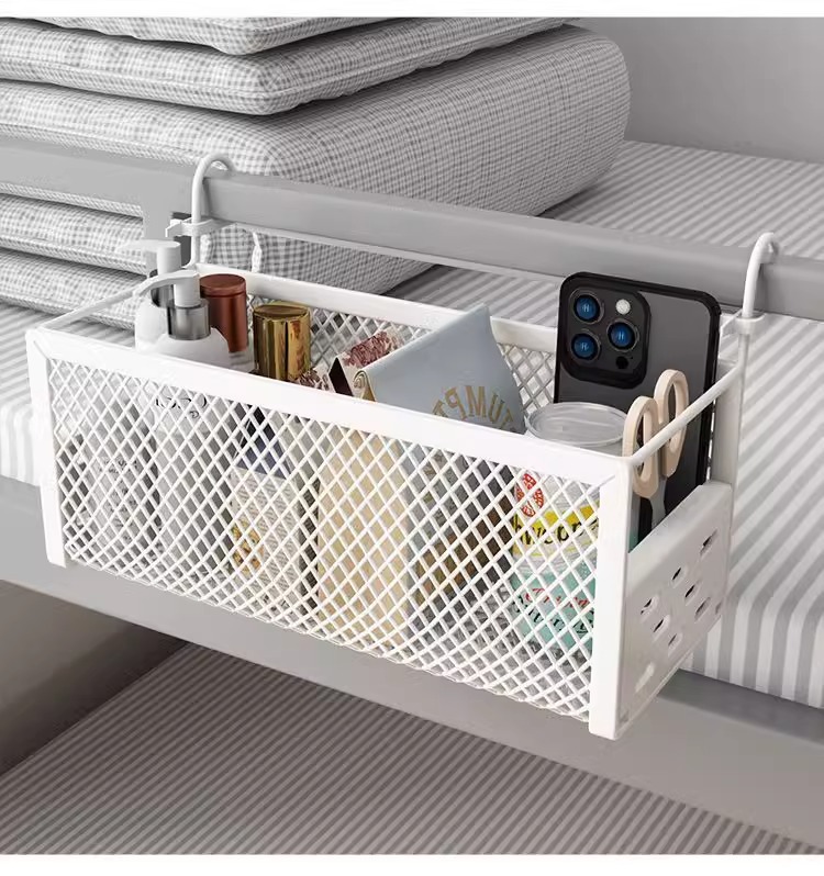 기숙사 침대 옆 교수형 바구니 침대 선반 상단 벙크 교수형 침대 옆 좋은 것 유물 침실 펀치 프리 스토리지 랙