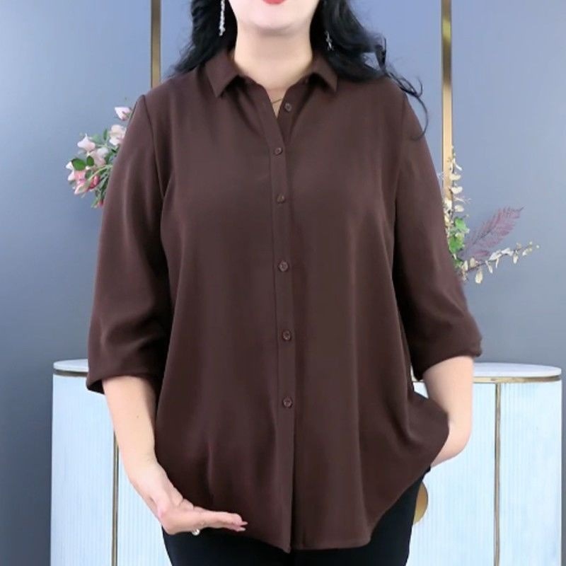 플러스 사이즈 여성의 봄과 가을 느슨한 셔츠 유행 육체 커버 슬리밍 서양식 시대-모든 경기 작은 셔츠 톱 셔츠 어머니의 셔츠 감소스토어 가기