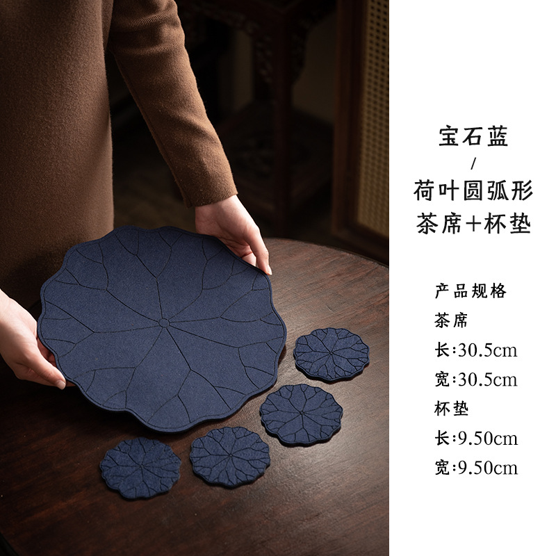 • 연잎 루이 티 매트 + 코스터 4개 사파이어 블루