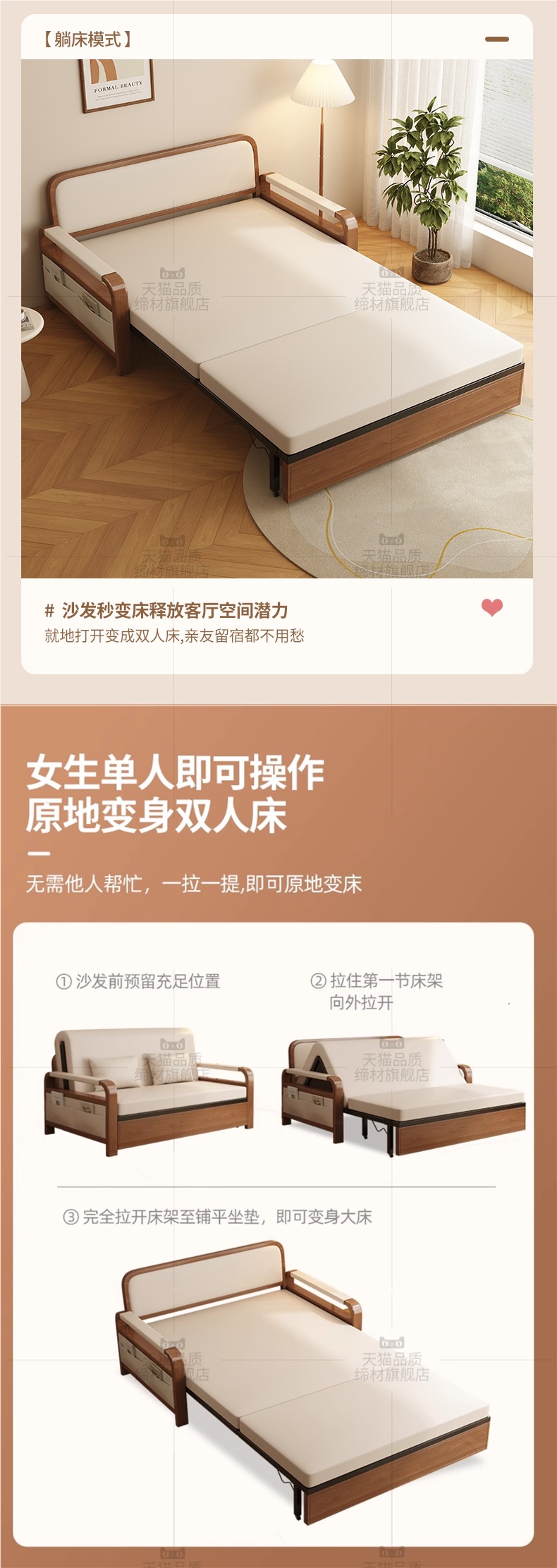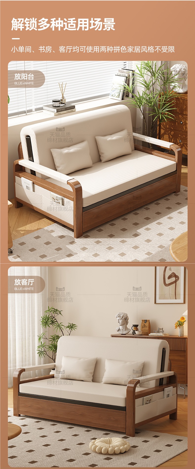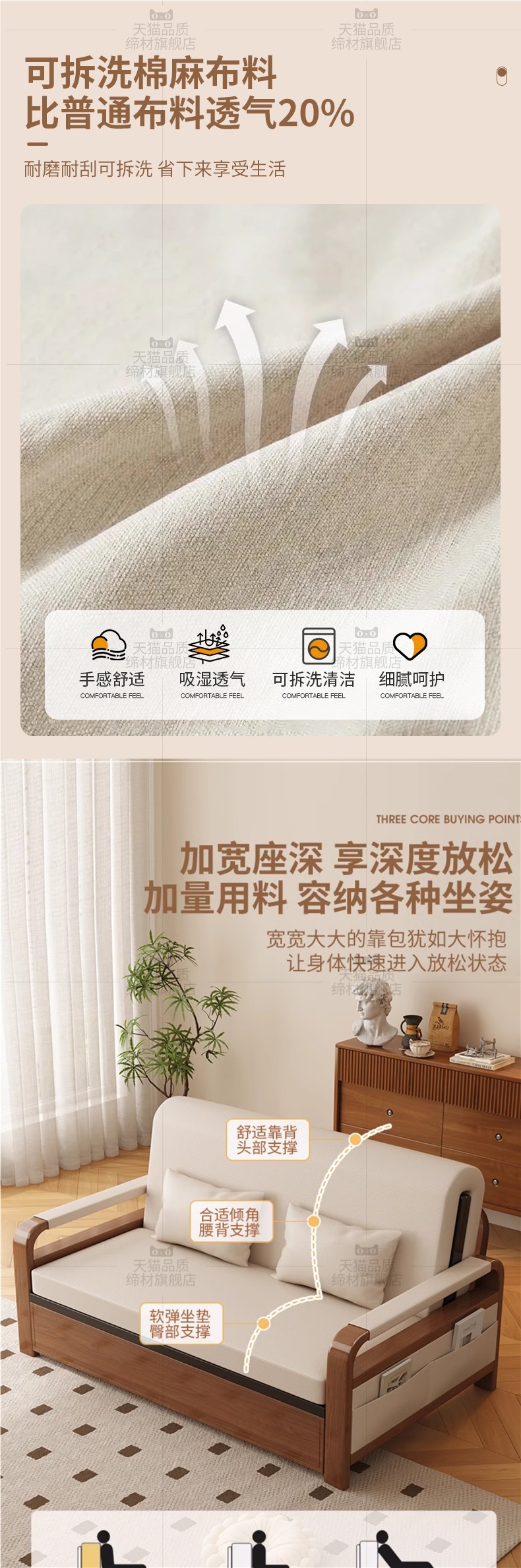 • [코코넛 브라운 모델] 오프화이트 0.8m 수납소파베드(면&린넨+월넛프레임) 설치 미포함