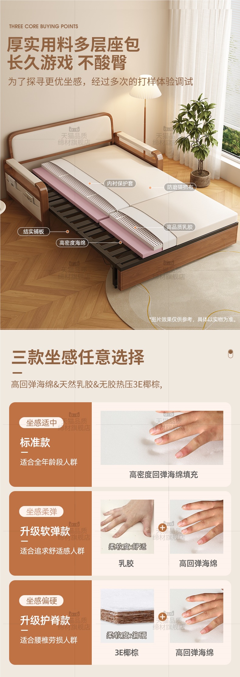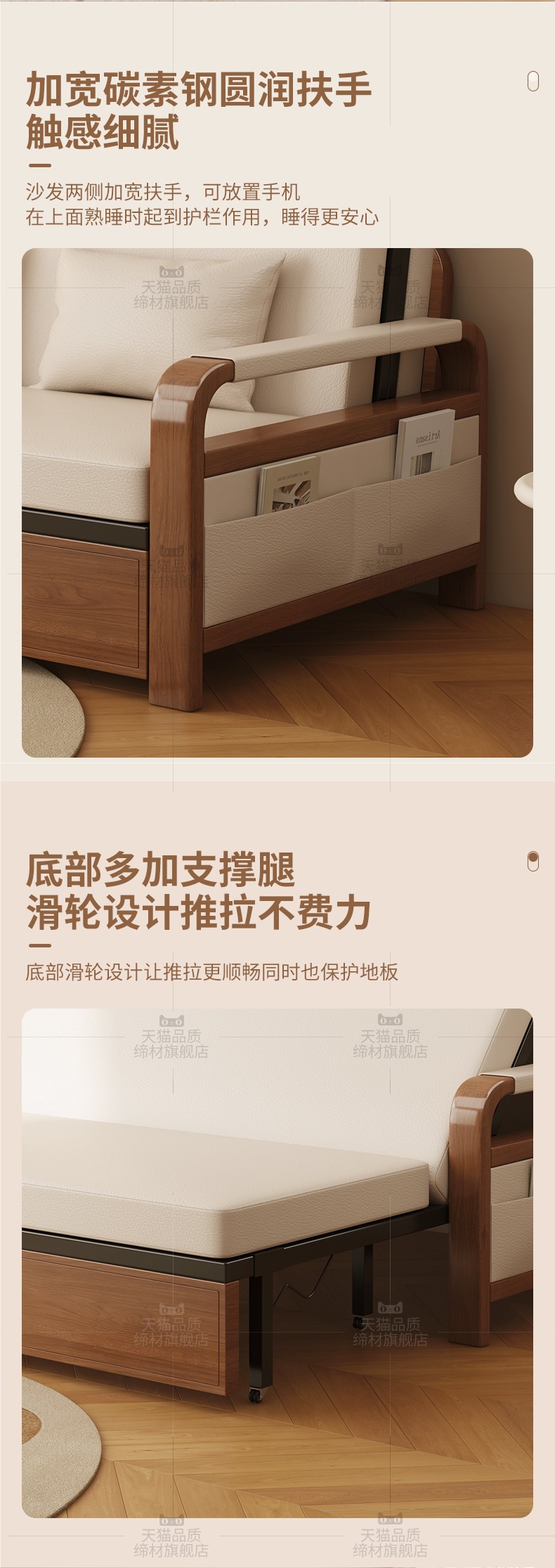 • [라텍스 모델] 오프화이트 0.8m 수납소파베드(고양이스크래치가죽+월넛컬러 프레임) 설치 미포함