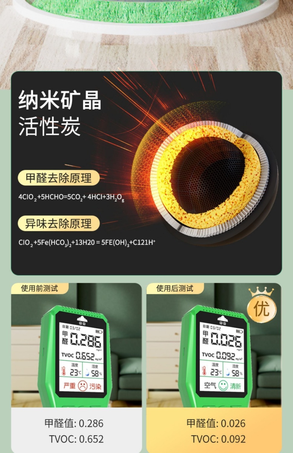 • 6KG - 테스트 박스 4개 - 정화 60-100제곱미터 - 칭화대학교 테스트 및 인증 - 알데히드 제거율 99.9%