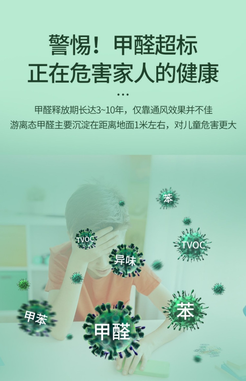 • 8KG - 4개의 테스트 박스 - 정화 90-150 평방미터 - 칭화대학교 테스트 및 인증 - 알데히드 제거율 99.9%