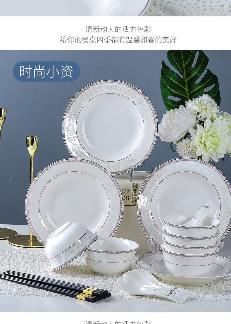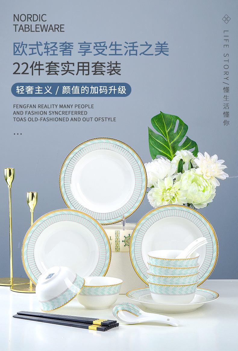 Jingdezhen 세라믹 식기 및 그릇 세트 가정용 ins 스타일 블루 블루 22피스 식기 세트 전체 세트 선물