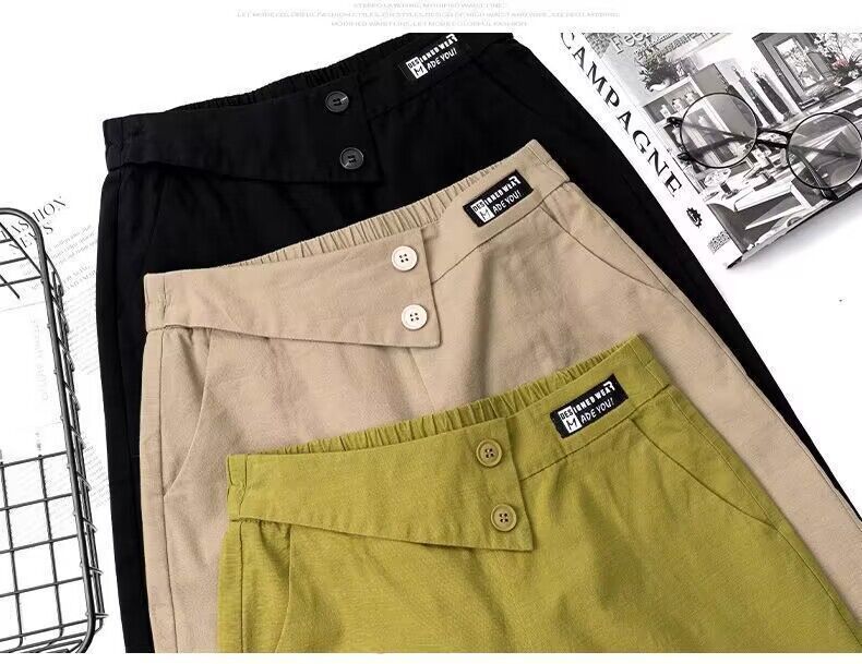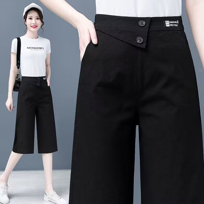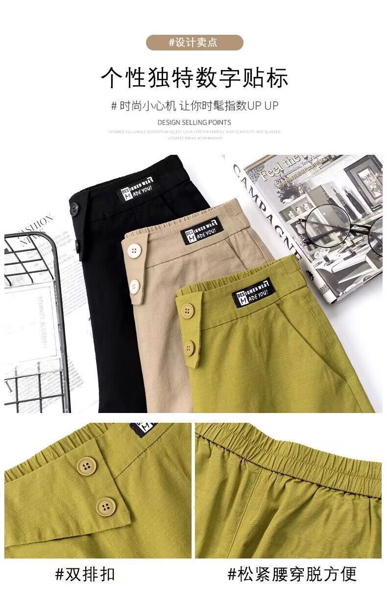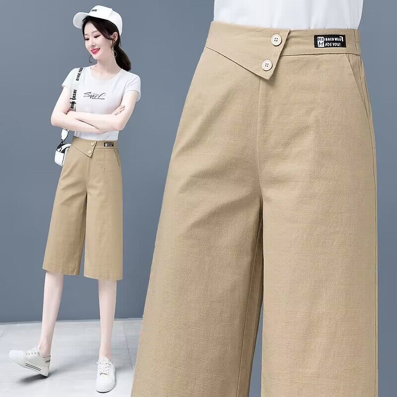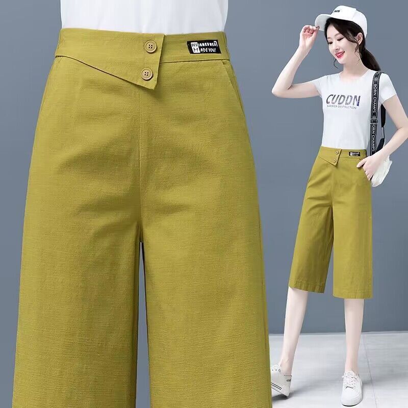 자른 바지 느슨한 여자 바지 올매치 여자 가을 2025 년 프라이드 스트리트 와이드 레그 캐주얼 스프링 코튼 및 리넨 바지 새로운 얇은 스타일스토어 가기