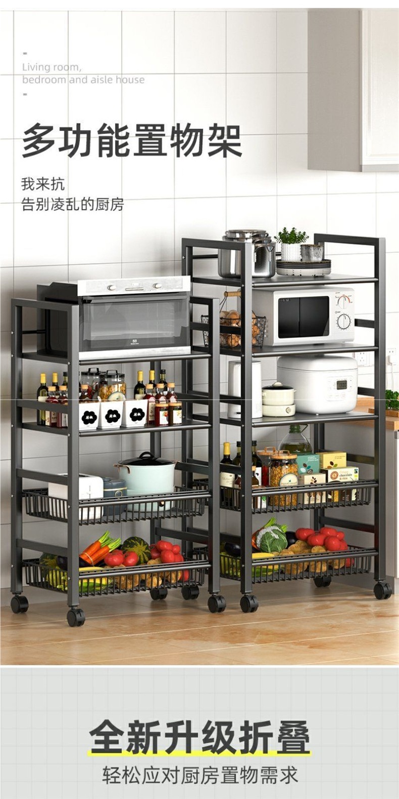 야채, 과일 및 과일 용 주방 야채 바구니 바닥 저장 랙 다층 저장 선반 야채를 위한 다기능 저장 선반