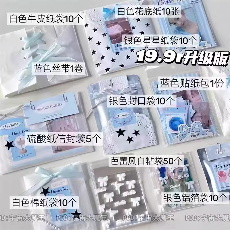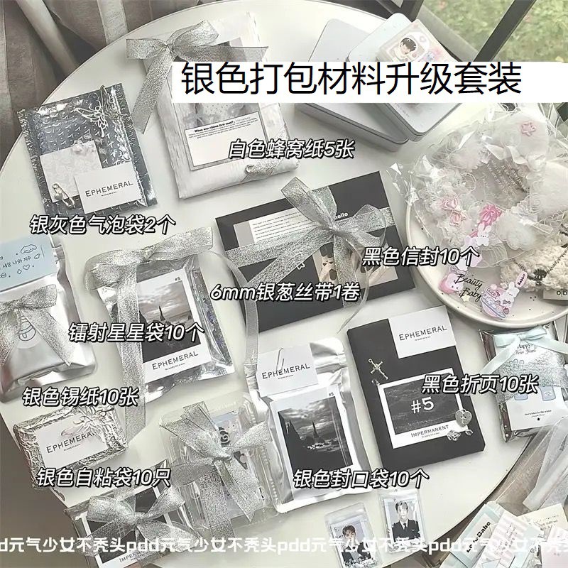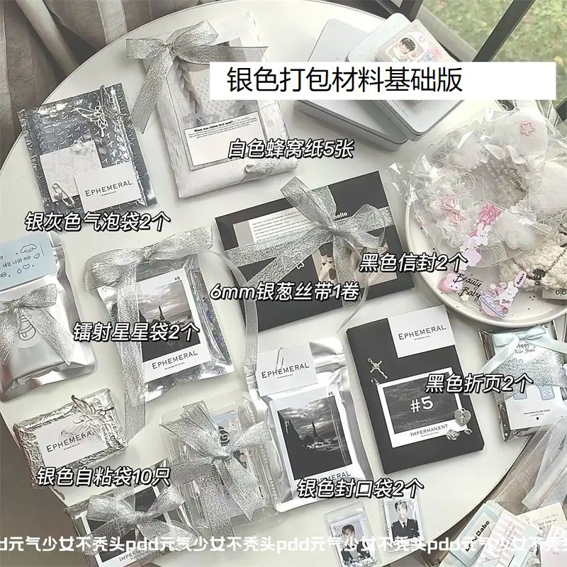 Ins 스타일 높은 색상 값 9.9 실버 시리즈 포장 재료 패키지 작은 카드 포장 재료 패키지 용융 세트스토어 가기