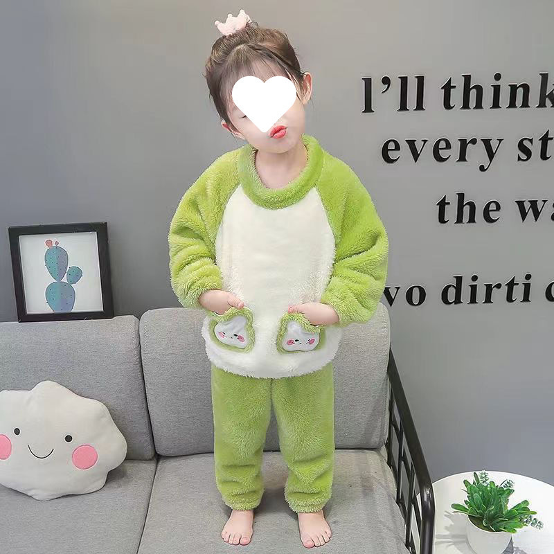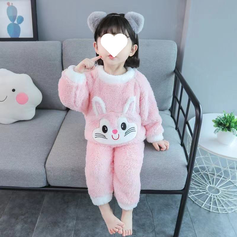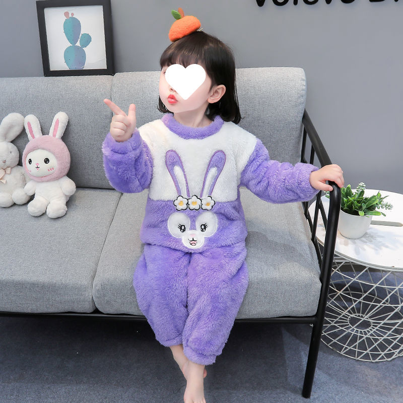 소녀의 잠옷 가을과 겨울 여성 아기 두꺼운 플란넬 살 된 가정 옷의 한국판 세트 머리카락을 우송합니다.스토어 가기