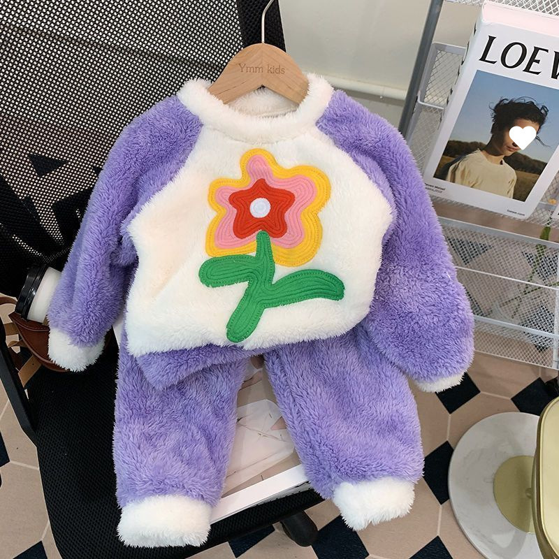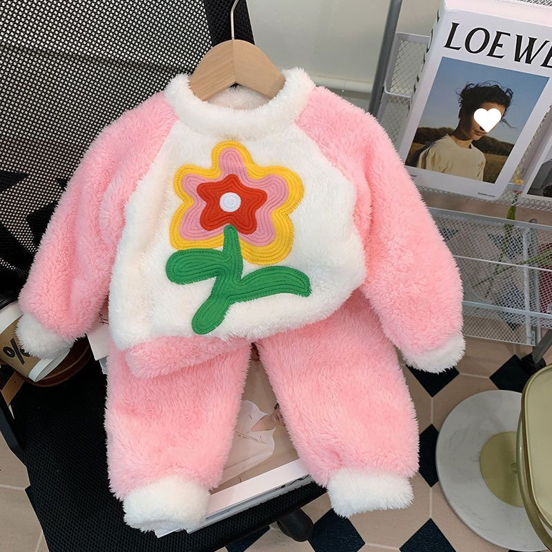 소녀의 잠옷 가을과 겨울 여성 아기 두꺼운 플란넬 살 된 가정 옷의 한국판 세트 머리카락을 우송합니다.