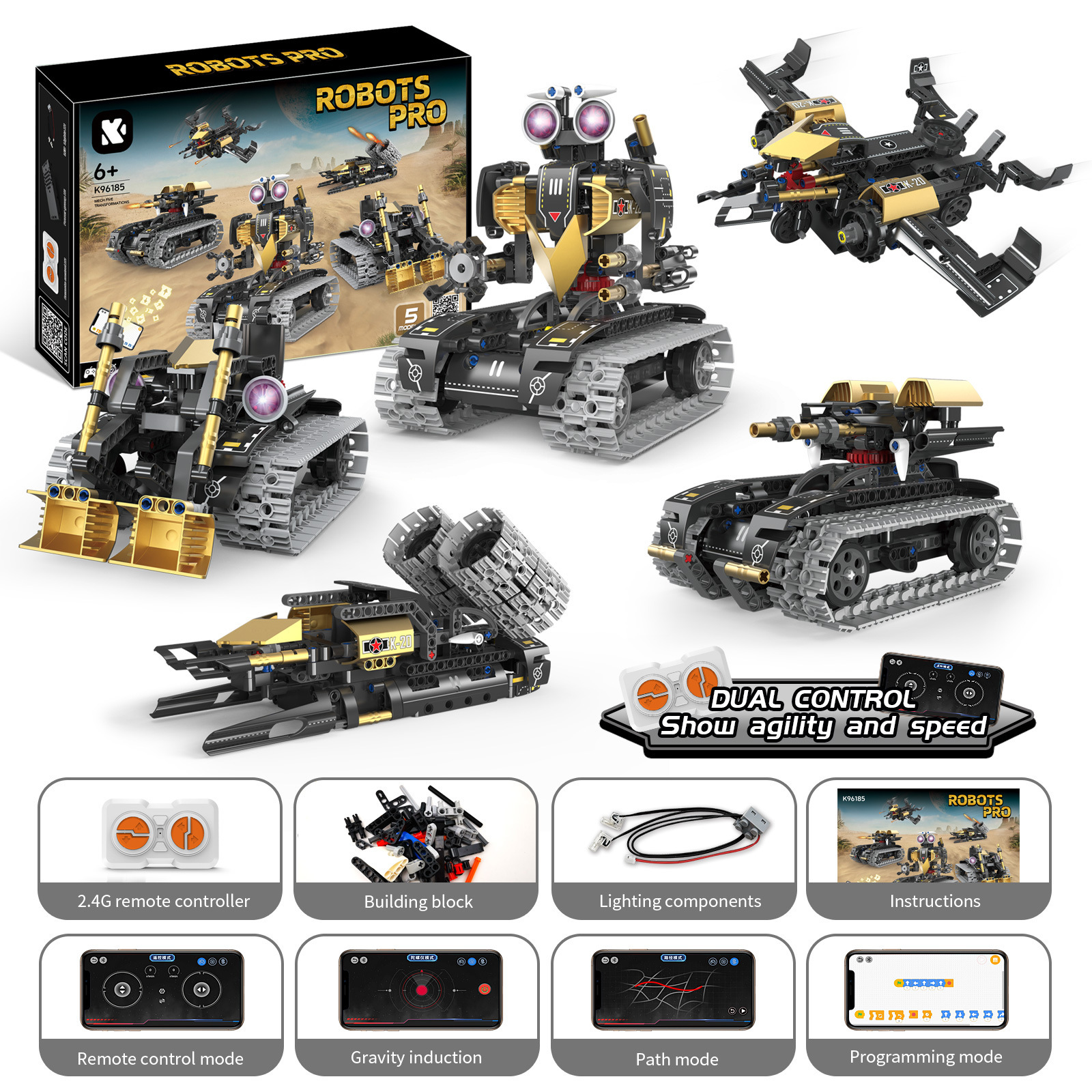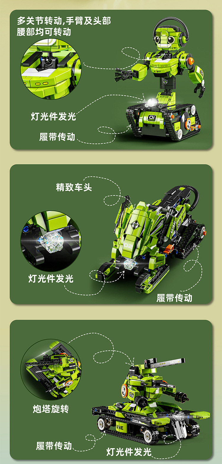 • K96185(5가지 변형) 조립된 군용 로봇(리모컨 + 휴대폰 프로그래밍)