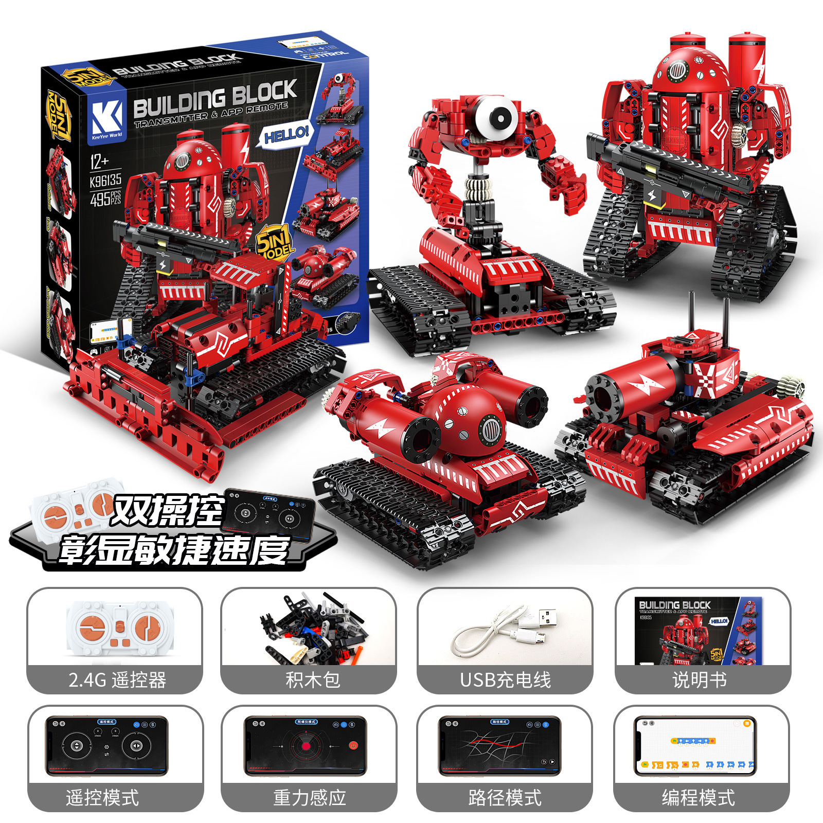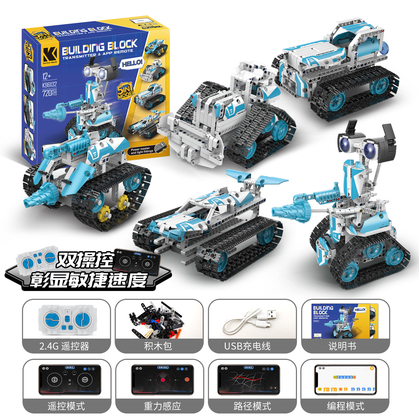 • K96132(5가지 변형) 조립된 별추적 로봇(리모컨 핸들 + 휴대폰 프로그래밍)