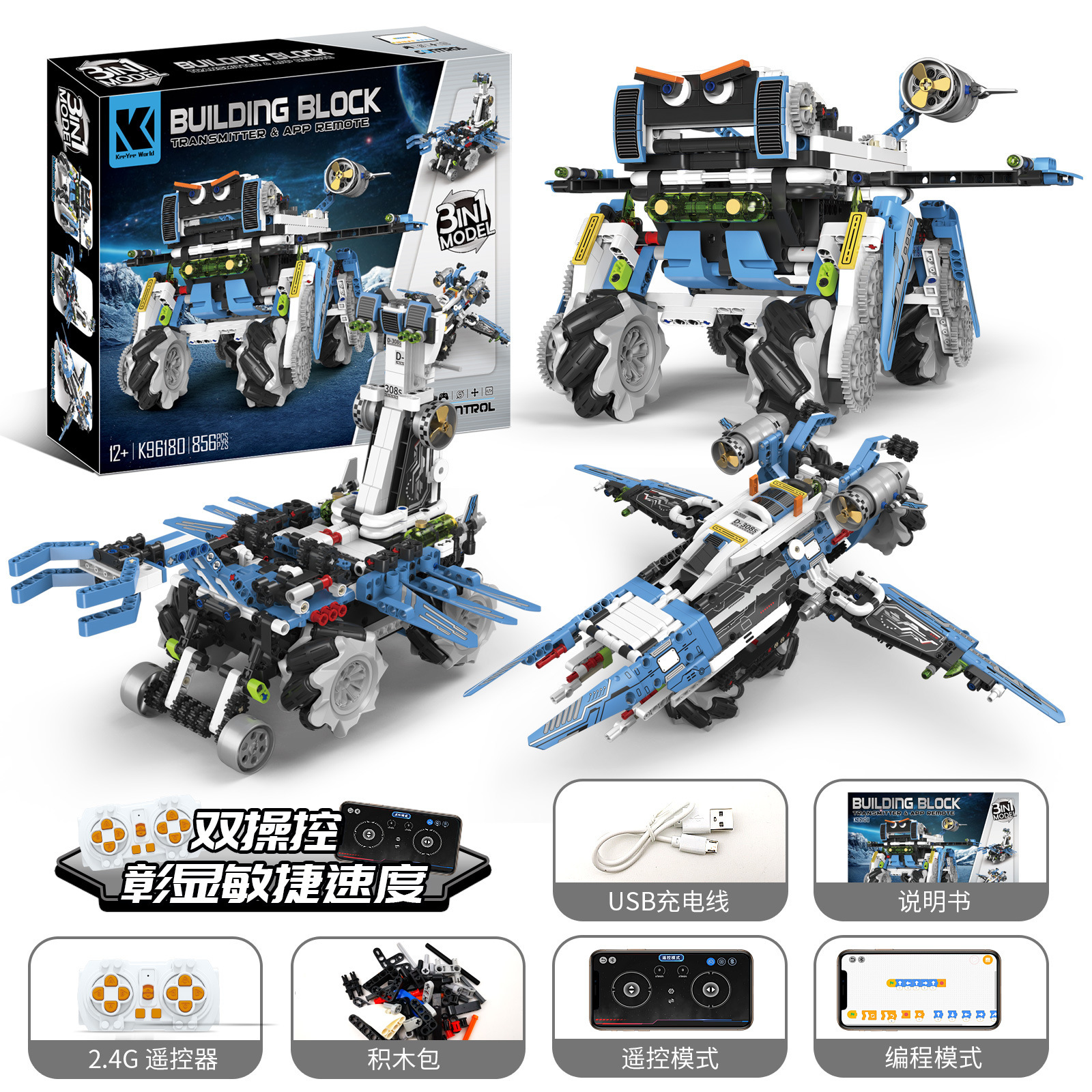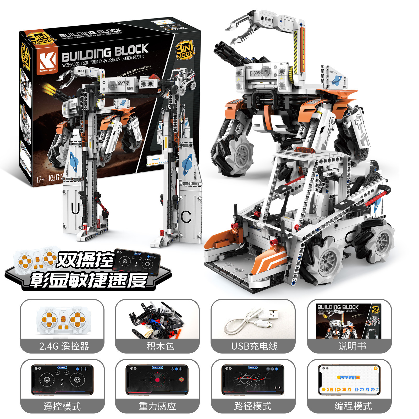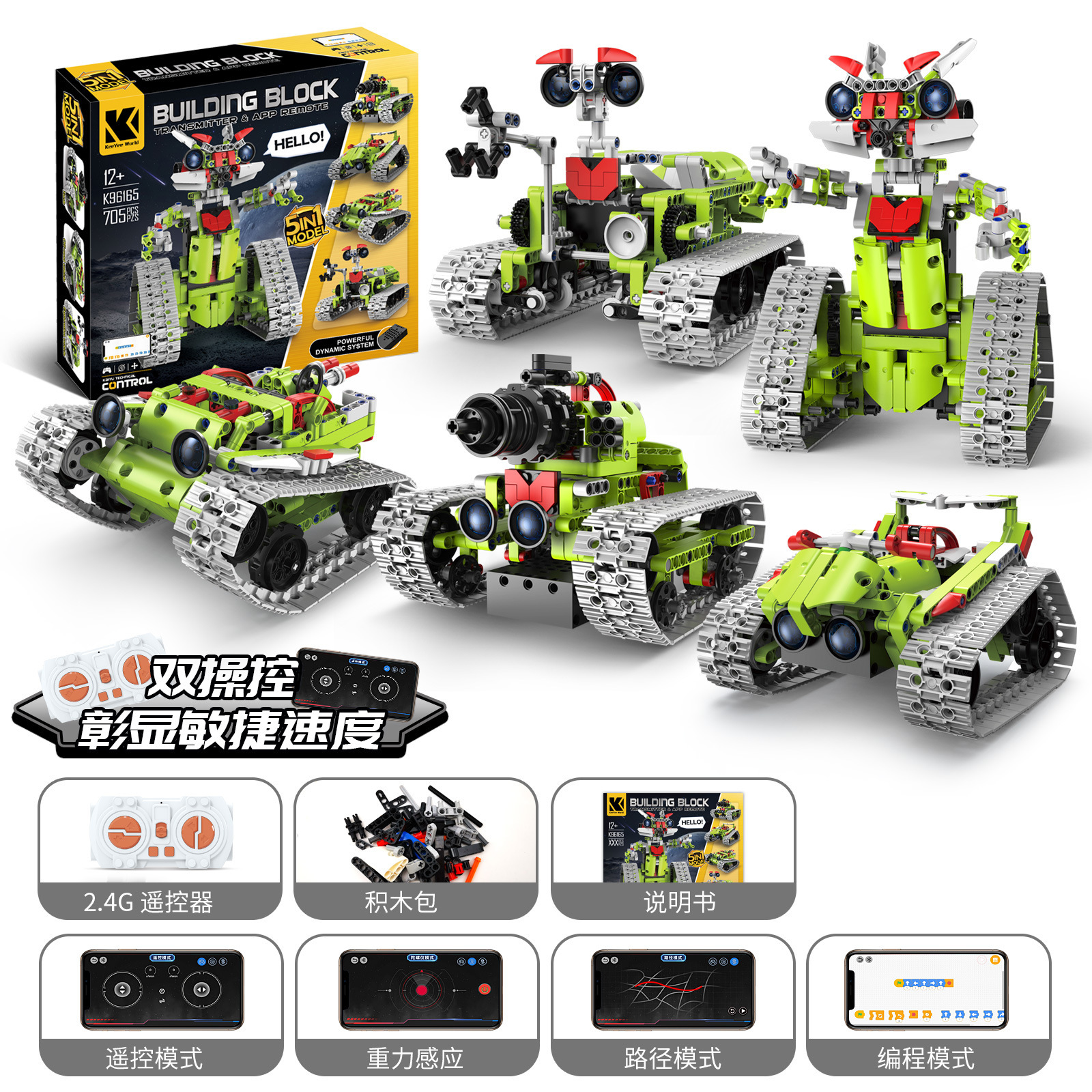 • K96165(5가지 변형) 조립로봇(리모컨 + 휴대폰 프로그래밍)