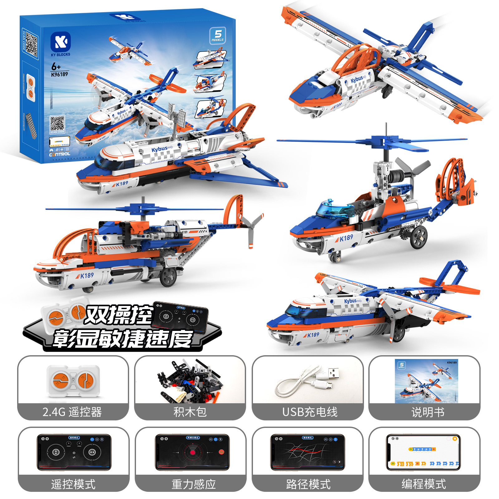 • K96189(5가지 변형) 조립 항공기 함대(리모컨 + 휴대폰 프로그래밍)