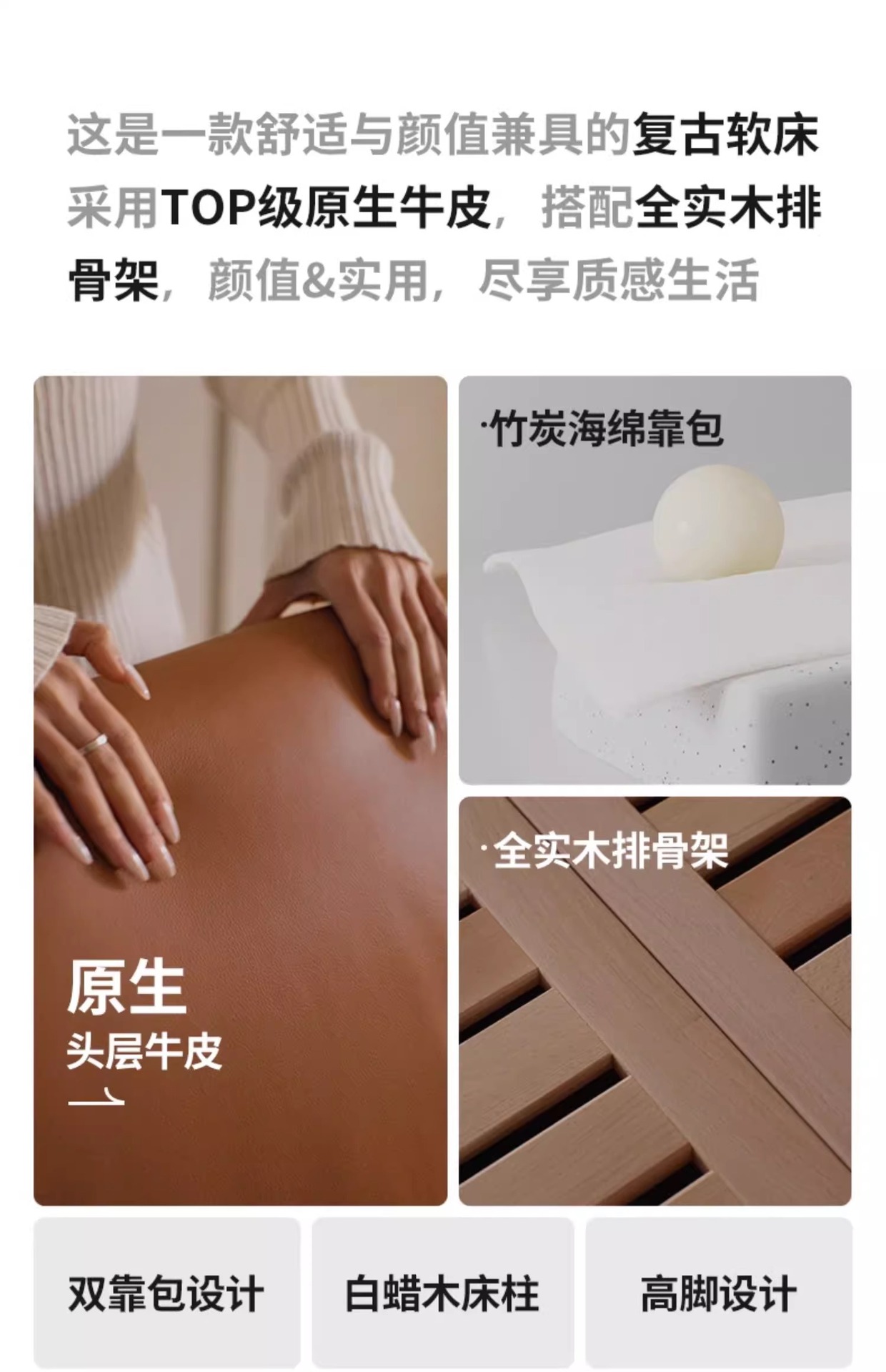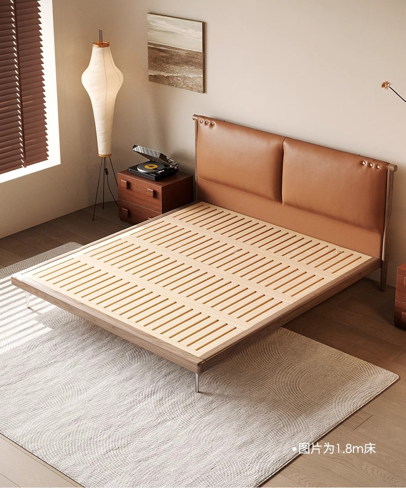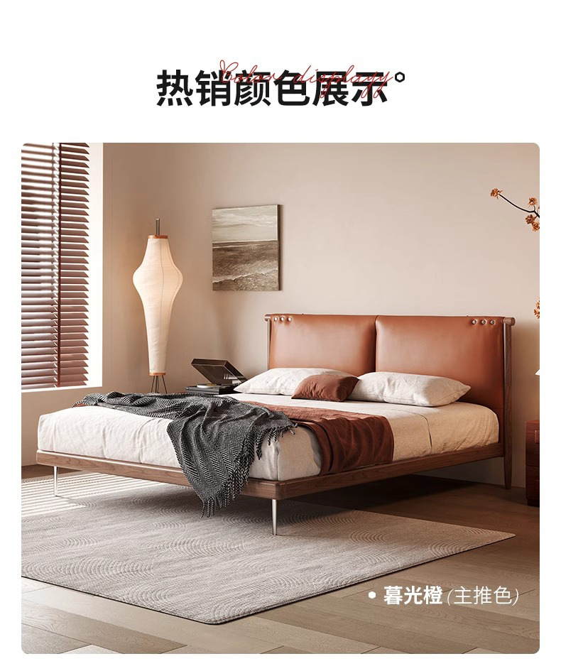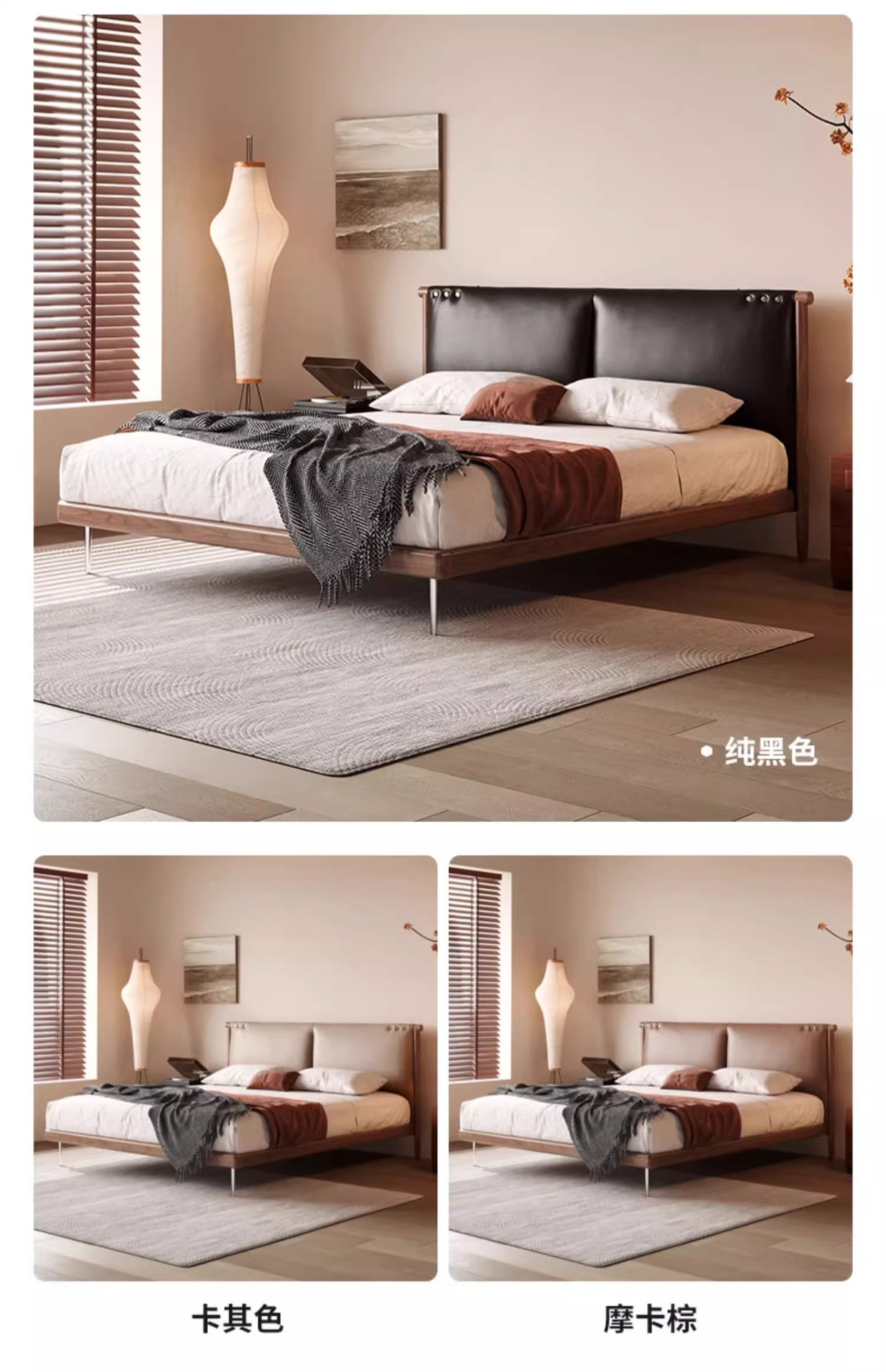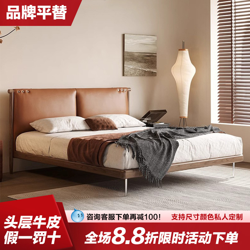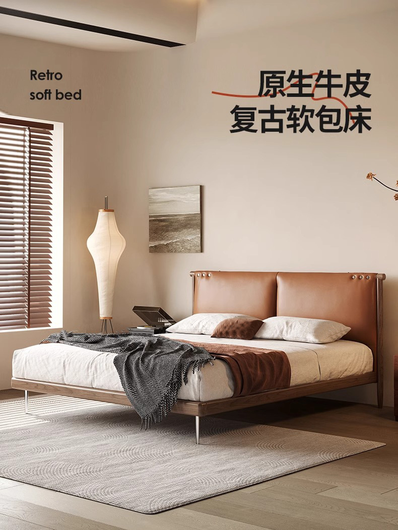 파이차오이판 레트로 가죽 침대, 앤티크 스타일 고급 원목 침대, 2025년 신형 모던 심플 마스터룸 더블 침대스토어 가기