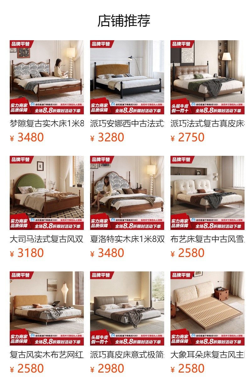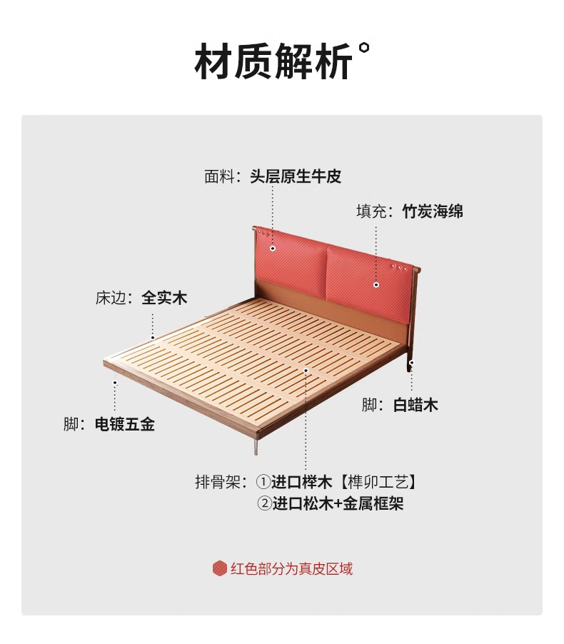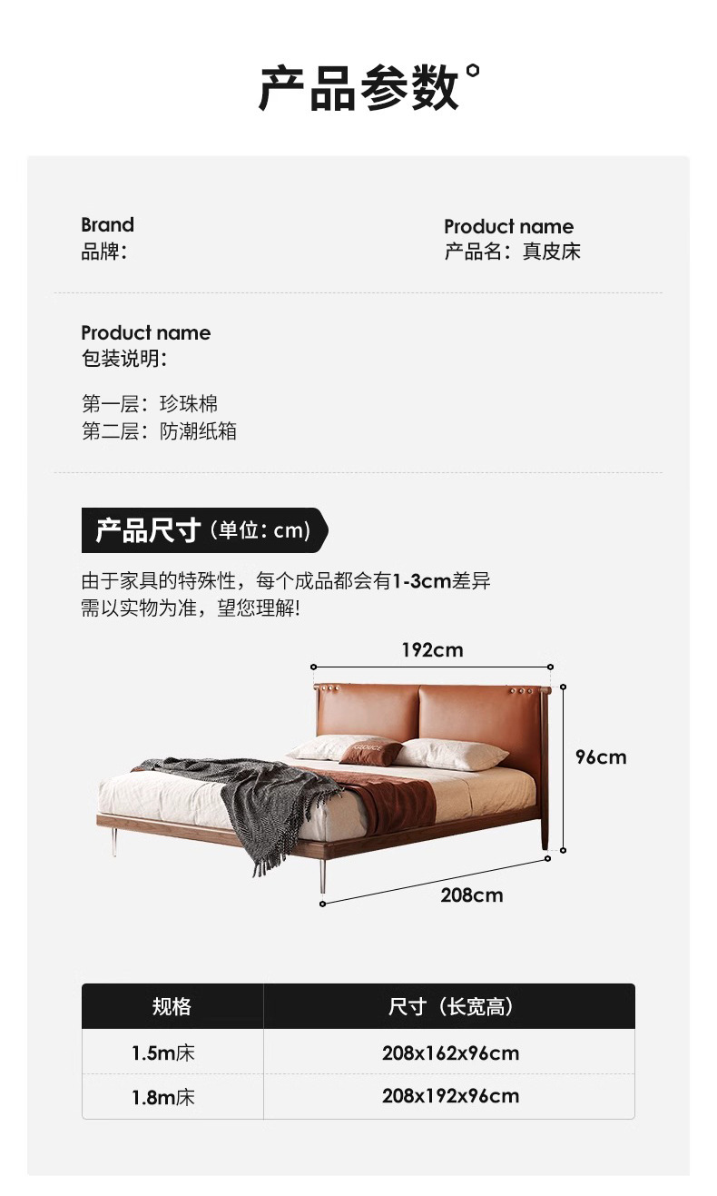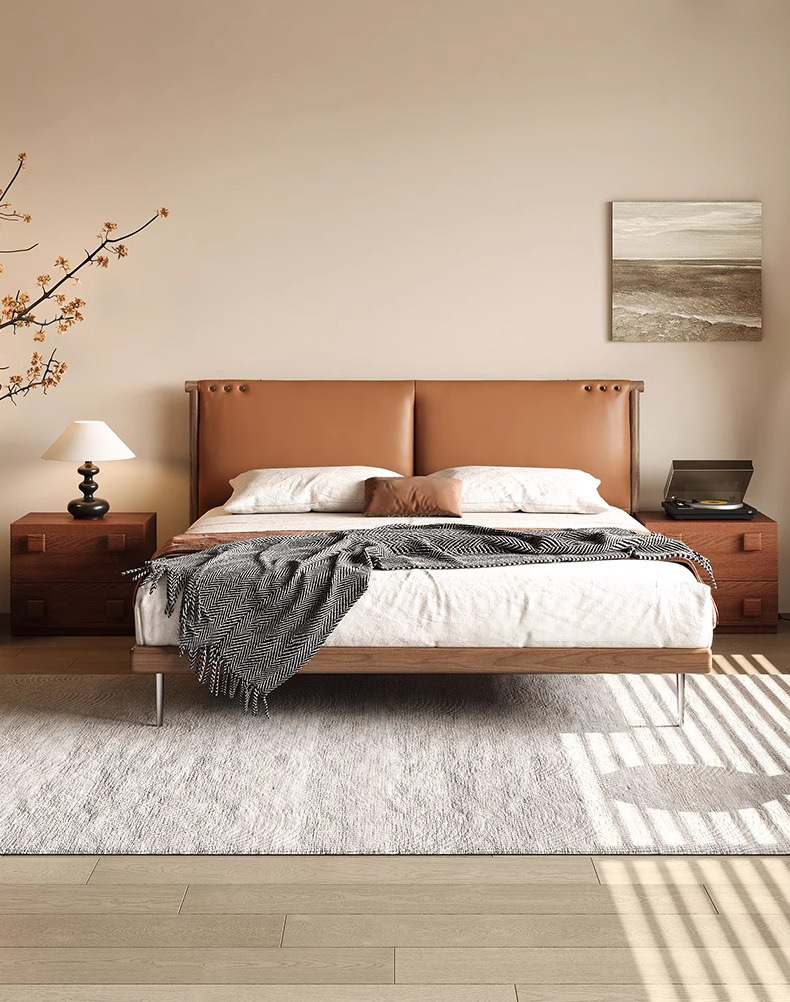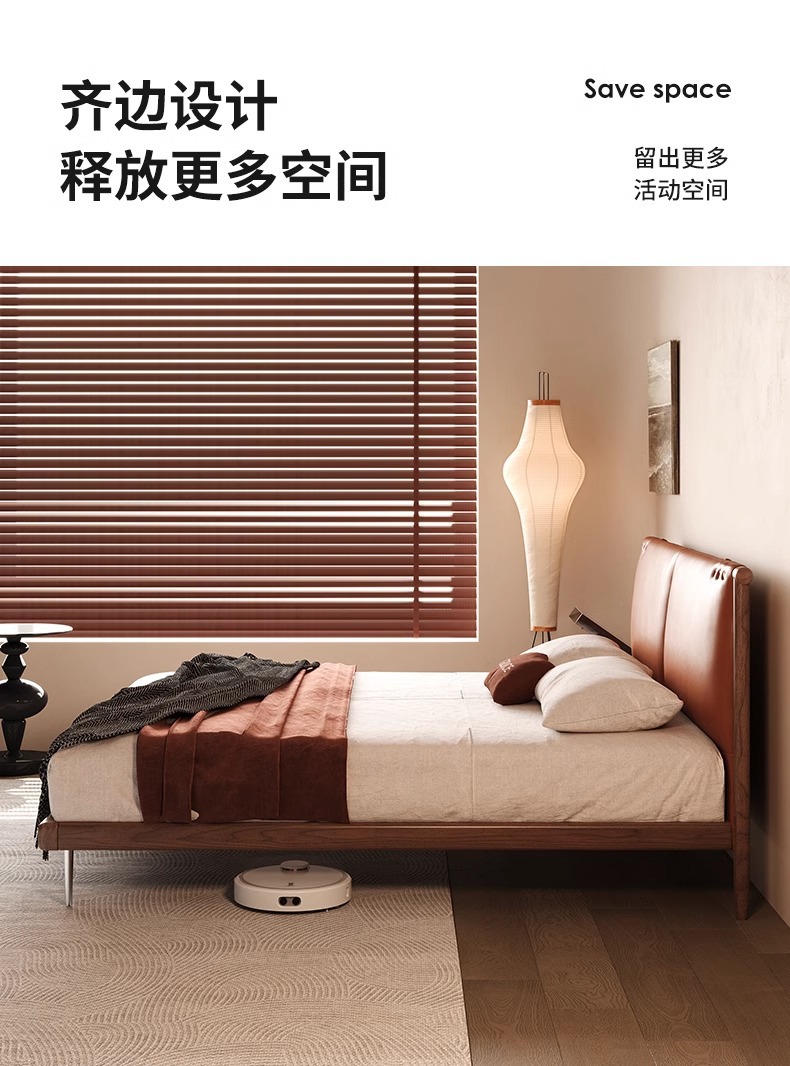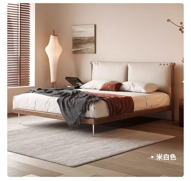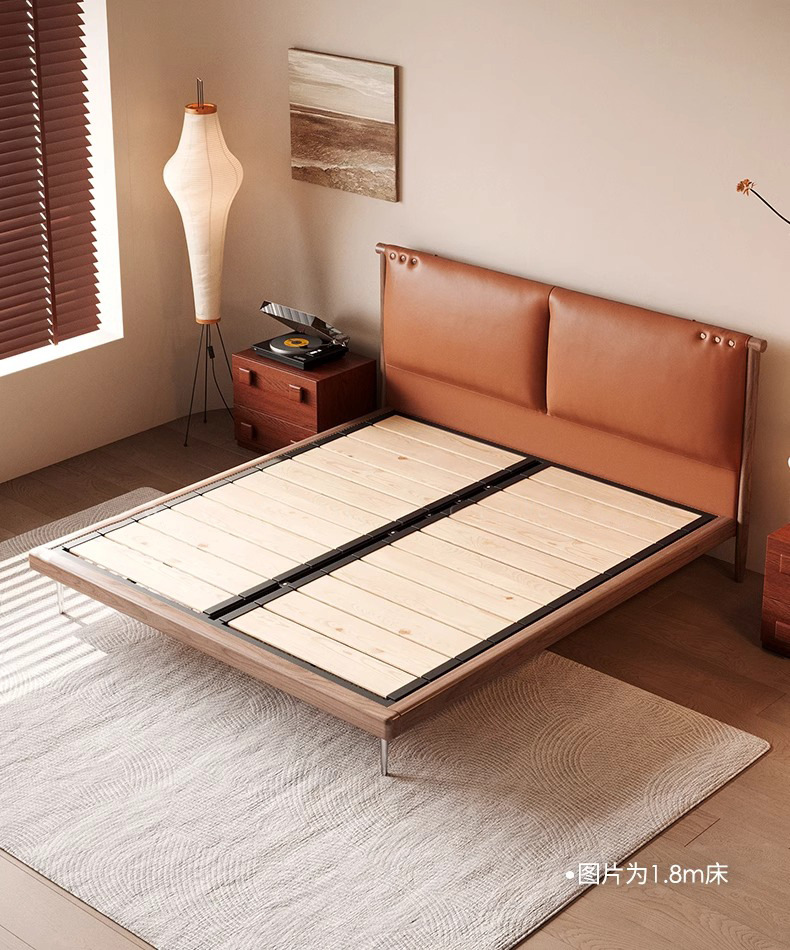 파이차오이판 레트로 가죽 침대, 앤티크 스타일 고급 원목 침대, 2025년 신형 모던 심플 마스터룸 더블 침대스토어 가기
