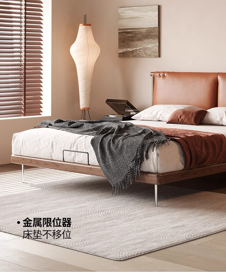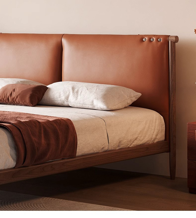 파이차오이판 레트로 가죽 침대, 앤티크 스타일 고급 원목 침대, 2025년 신형 모던 심플 마스터룸 더블 침대