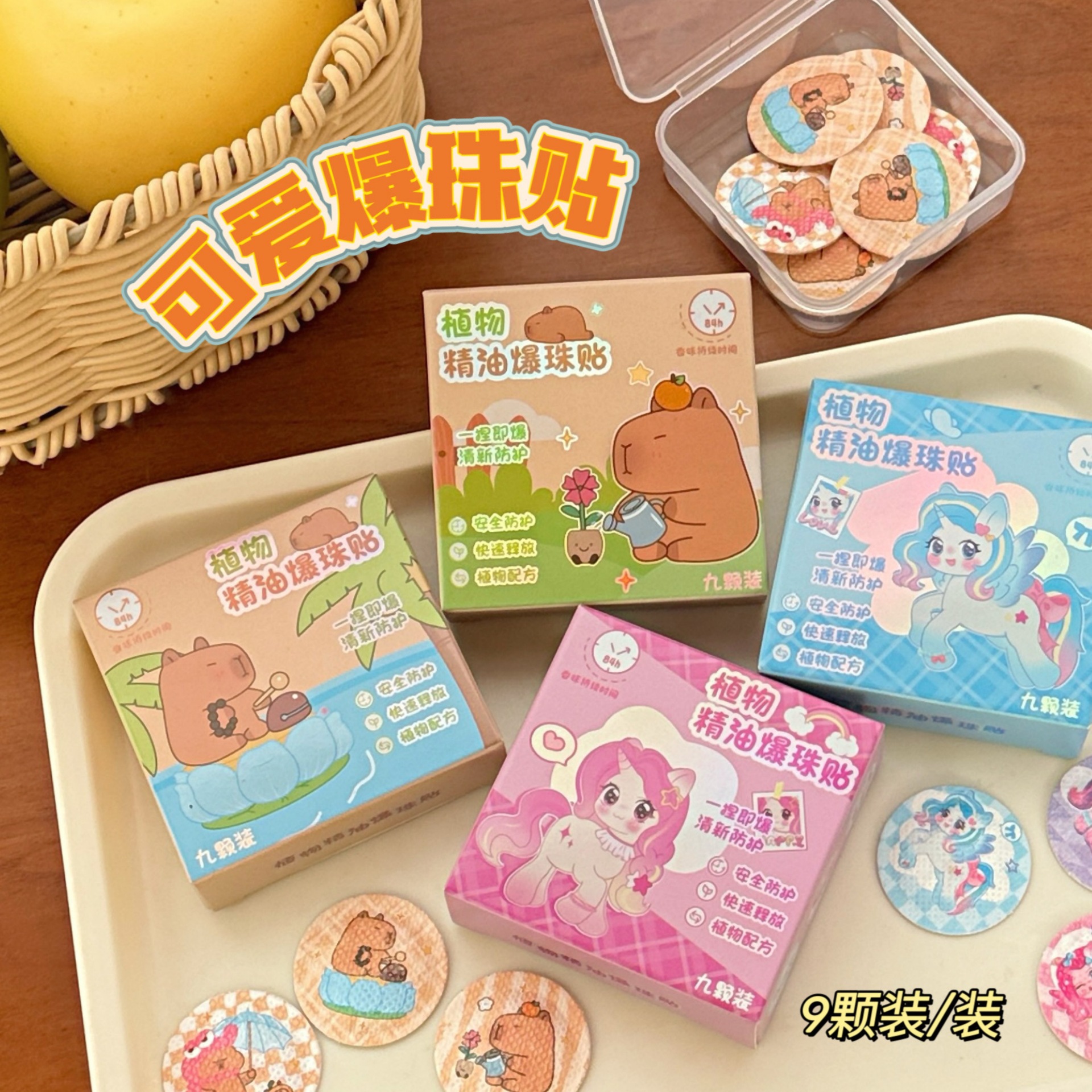 소녀들을 위한 새로운 귀여운 만화 에센셜 오일 버스트 비즈 스티커, 여름 야외 스티커, 크레용 신짱 정품 공인 식물 에센셜 오일