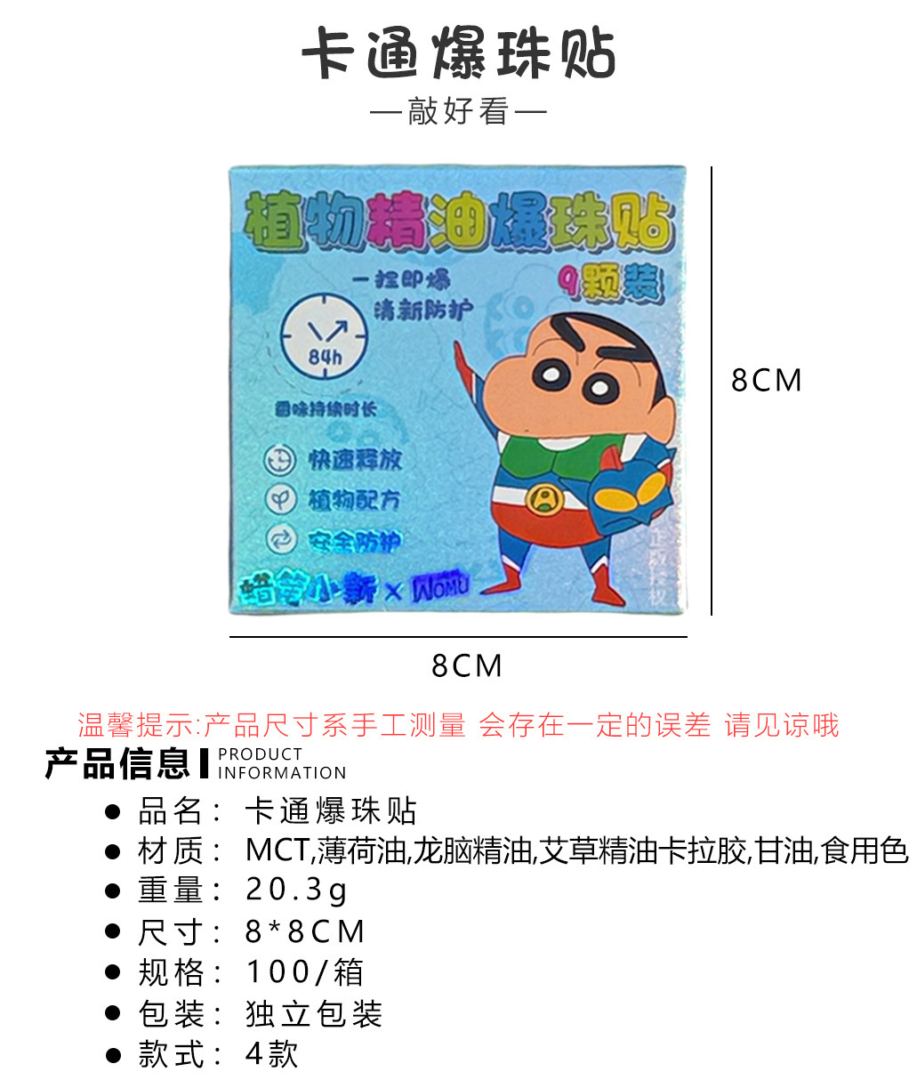 소녀들을 위한 새로운 귀여운 만화 에센셜 오일 버스트 비즈 스티커, 여름 야외 스티커, 크레용 신짱 정품 공인 식물 에센셜 오일스토어 가기