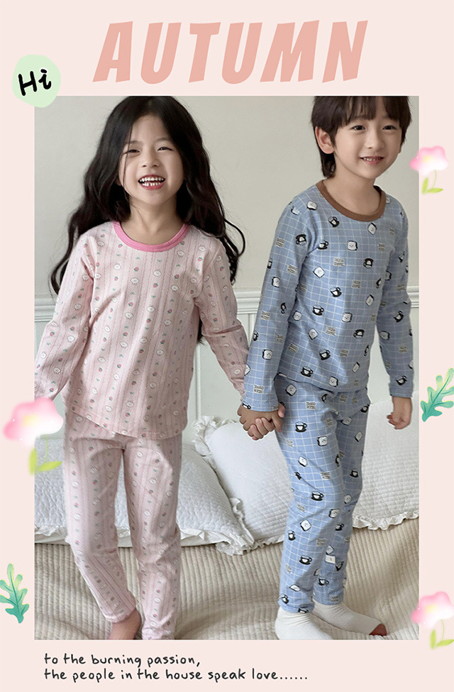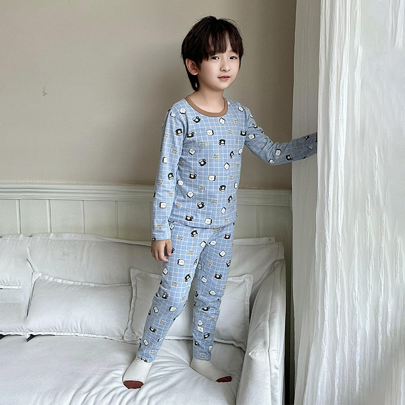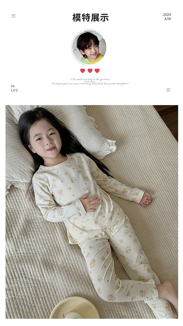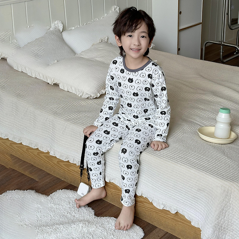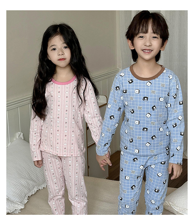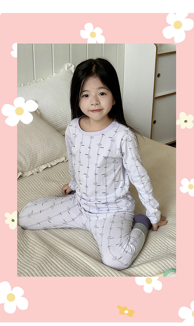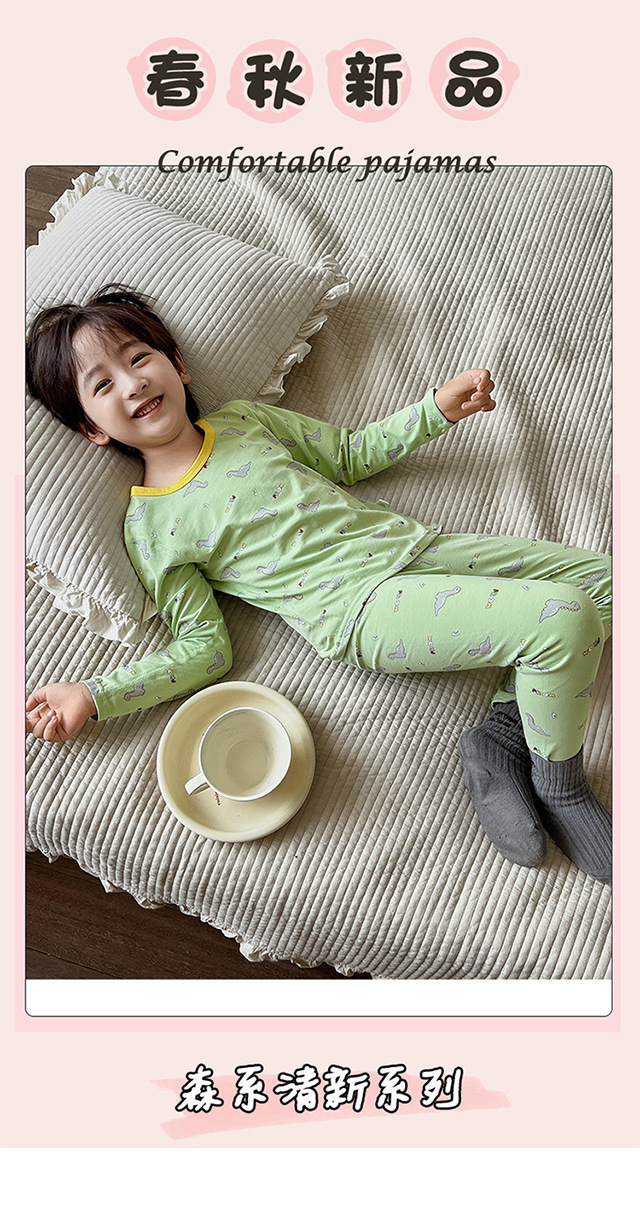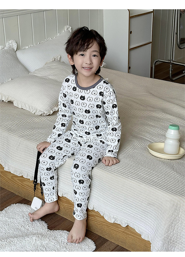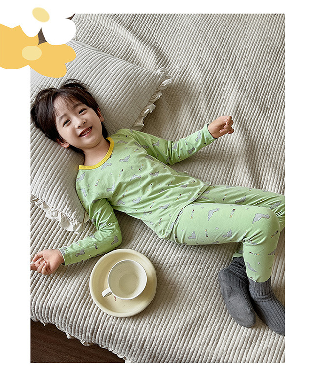2025 어린이 라이크라 얇은 홈 의류 세트 아기의 뼈없는 속옷 소년 소녀 봄과 가을 가을 가을 옷과 바지스토어 가기