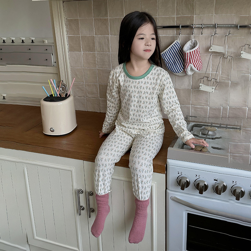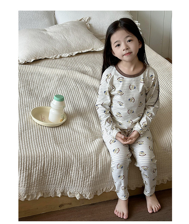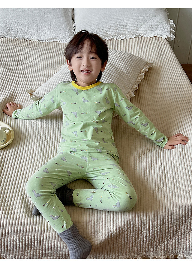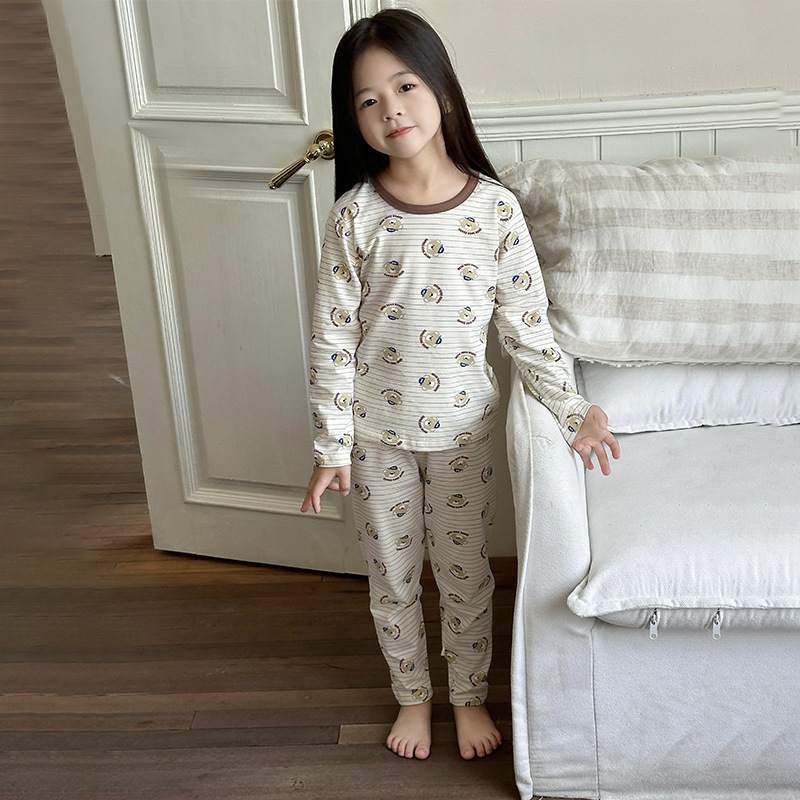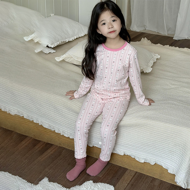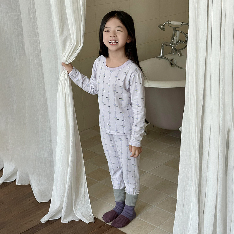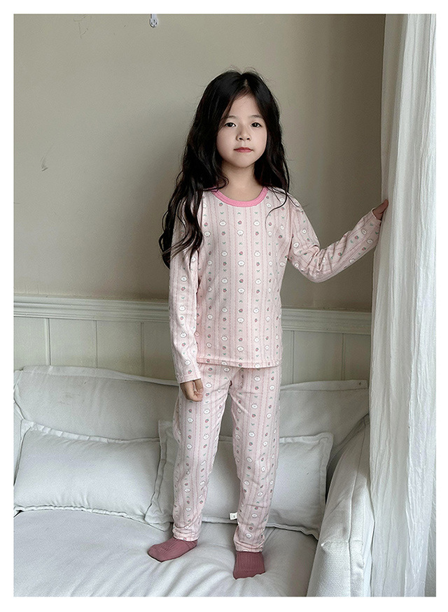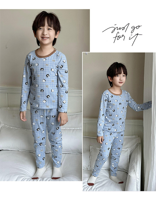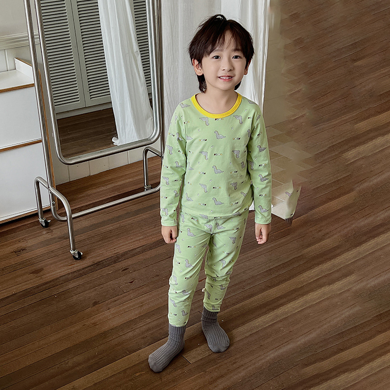 2025 어린이 라이크라 얇은 홈 의류 세트 아기의 뼈없는 속옷 소년 소녀 봄과 가을 가을 가을 옷과 바지스토어 가기