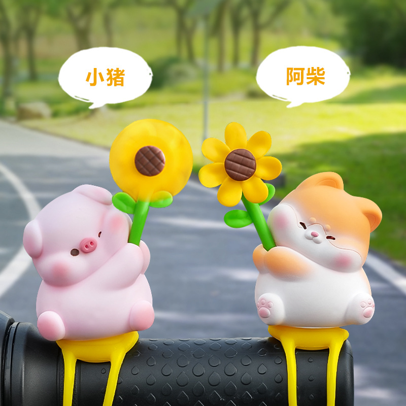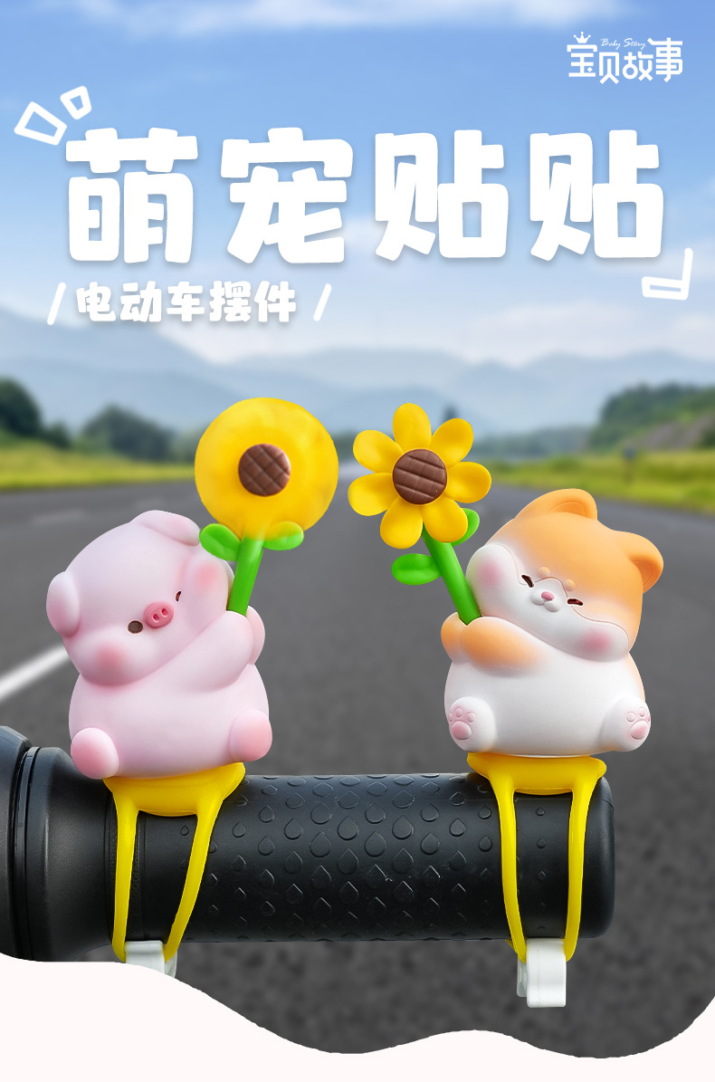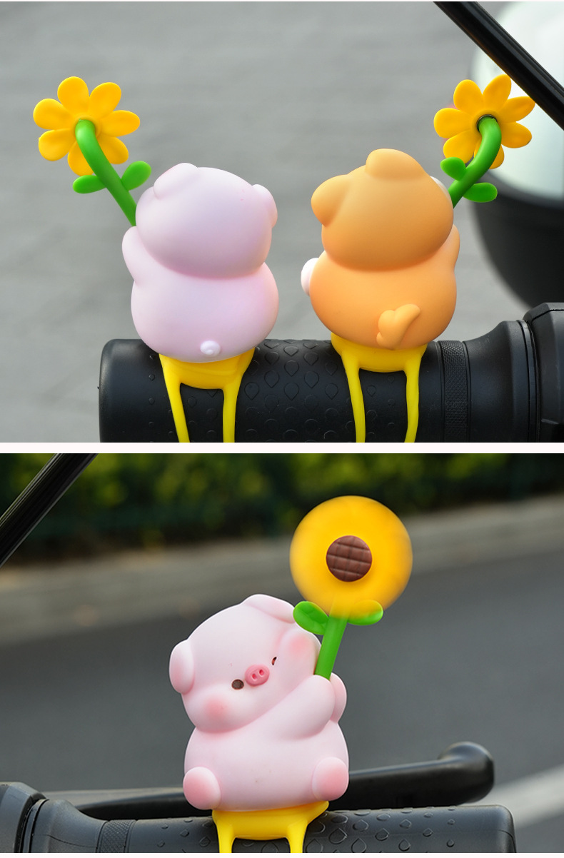 여름 새로운 귀여운 작은 동물 전기 자동차 인형 작은 풍차 장식품 자동차 오토바이 자전거 장식품스토어 가기