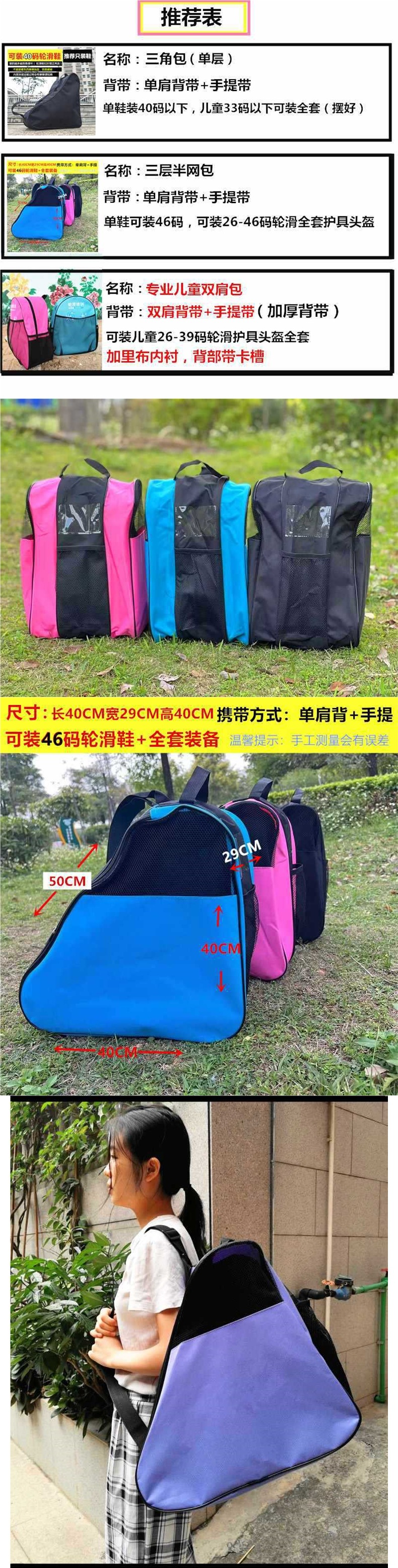 롤러 스케이트 배낭 어린이 인쇄되지 않은 스케이트 보호자 가방 성인 롤러 스케이트 여성 어깨 가방 3 층 내구성