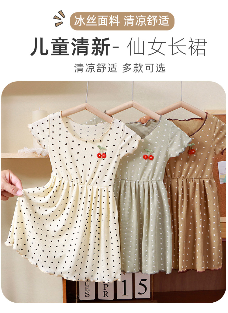 2025 여름 새 소녀 원피스 어린이 아이스 실크 스커트 아기 한국 짧은 소매 스커트 캐주얼 아동복 도매스토어 가기
