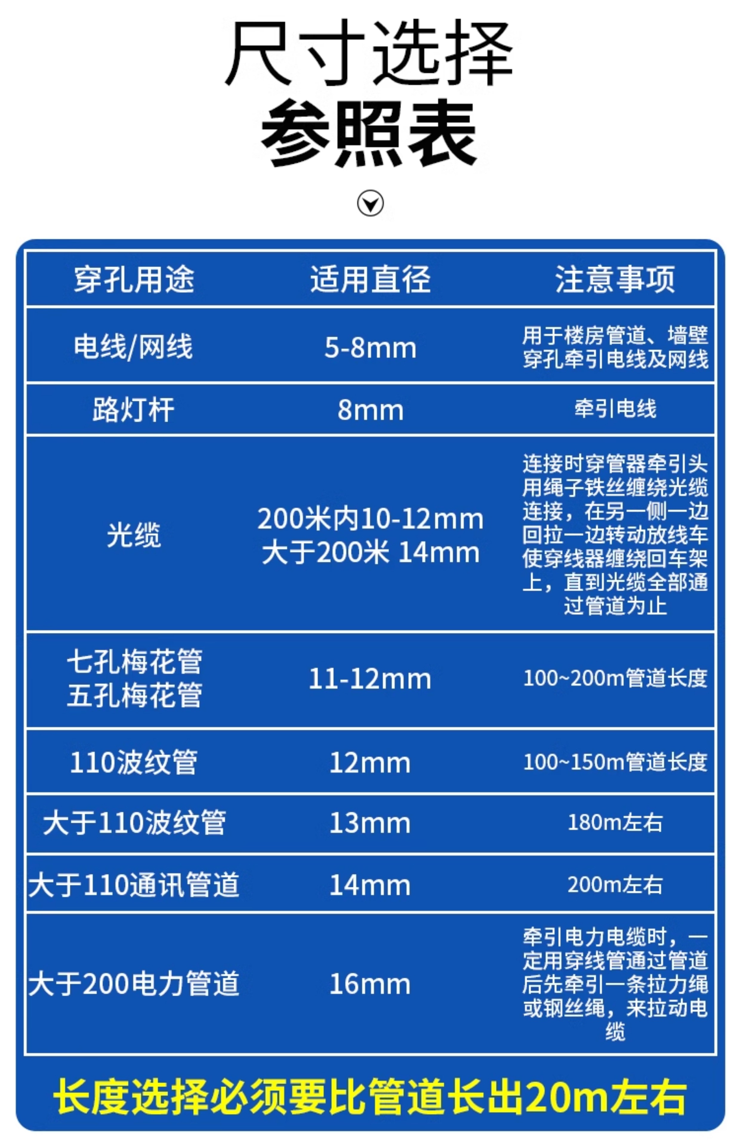 스레드 와이어 가이드 유리 섬유 천공기 파이프 준설 광 케이블 케이블 스레딩 전기 기술자 스레딩