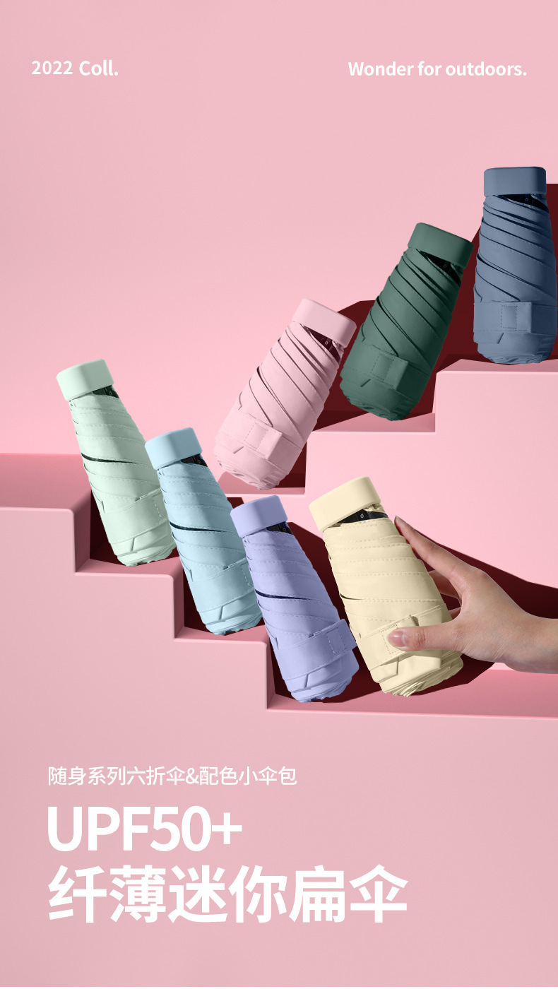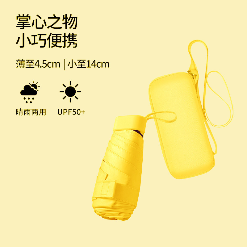 솔리드 컬러 태양 우산 여성 태양 보호 UV 보호 파라솔 5 배 배낭 작은 미니 접이식 카드 가방 우산 도매스토어 가기