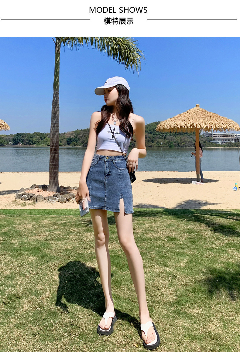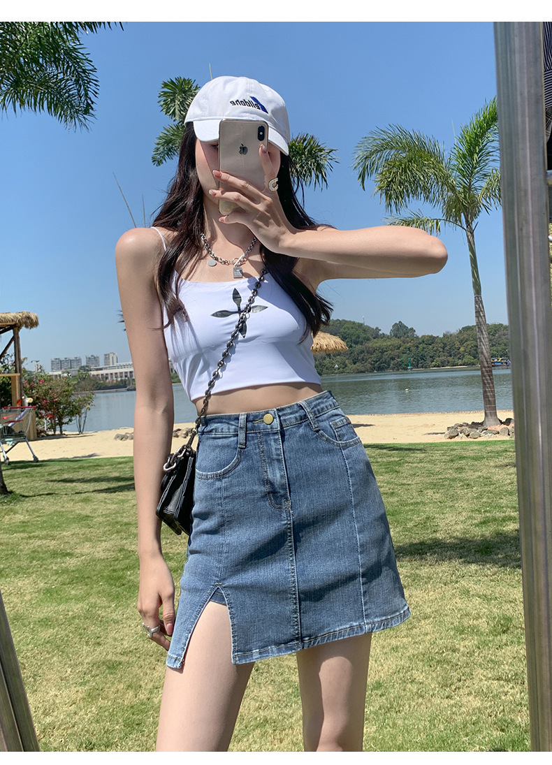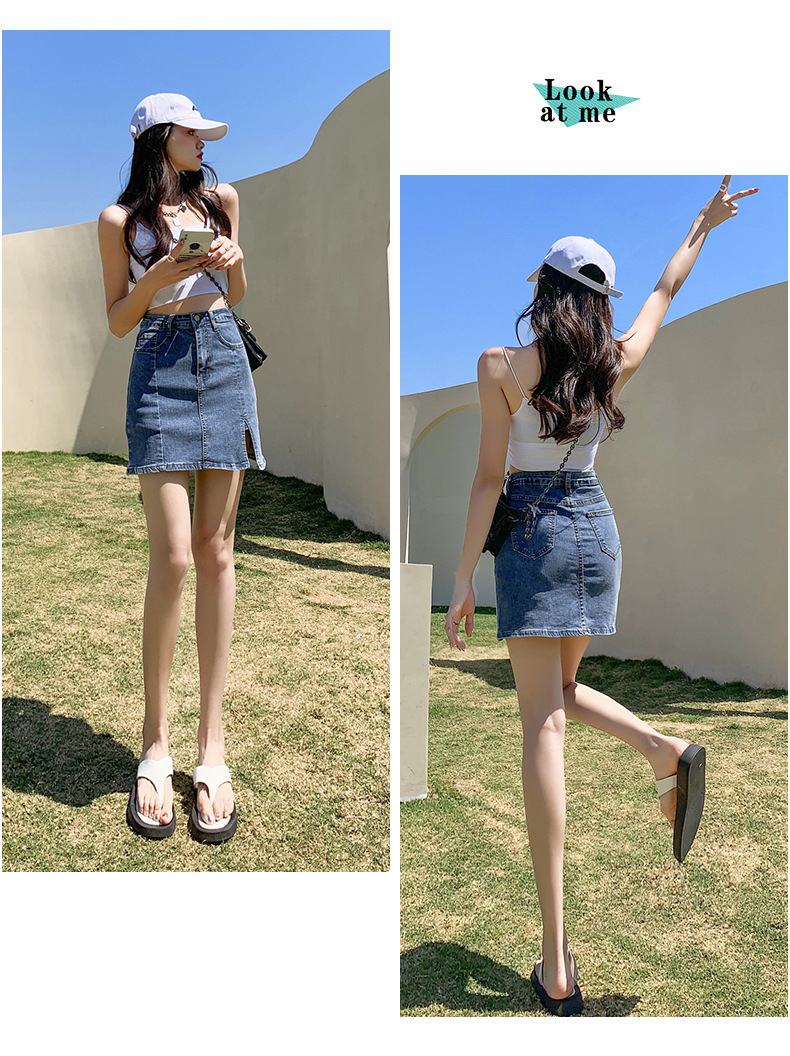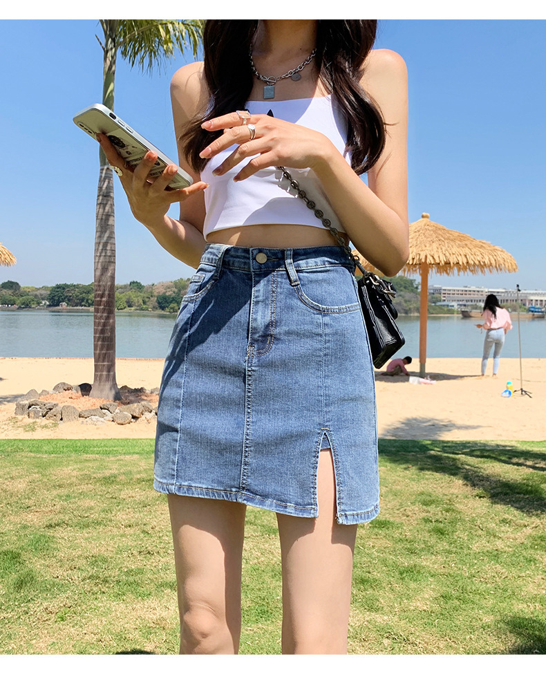 데님 짧은 치마 여자 2024 년 여름 새로운 높은 허리 슬림 핏 힙합 스커트 스트레치 미끄럼 방지 바지 스커트