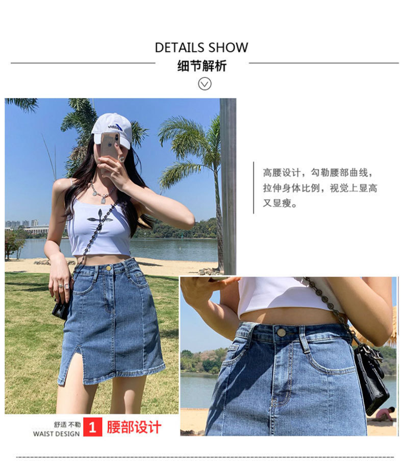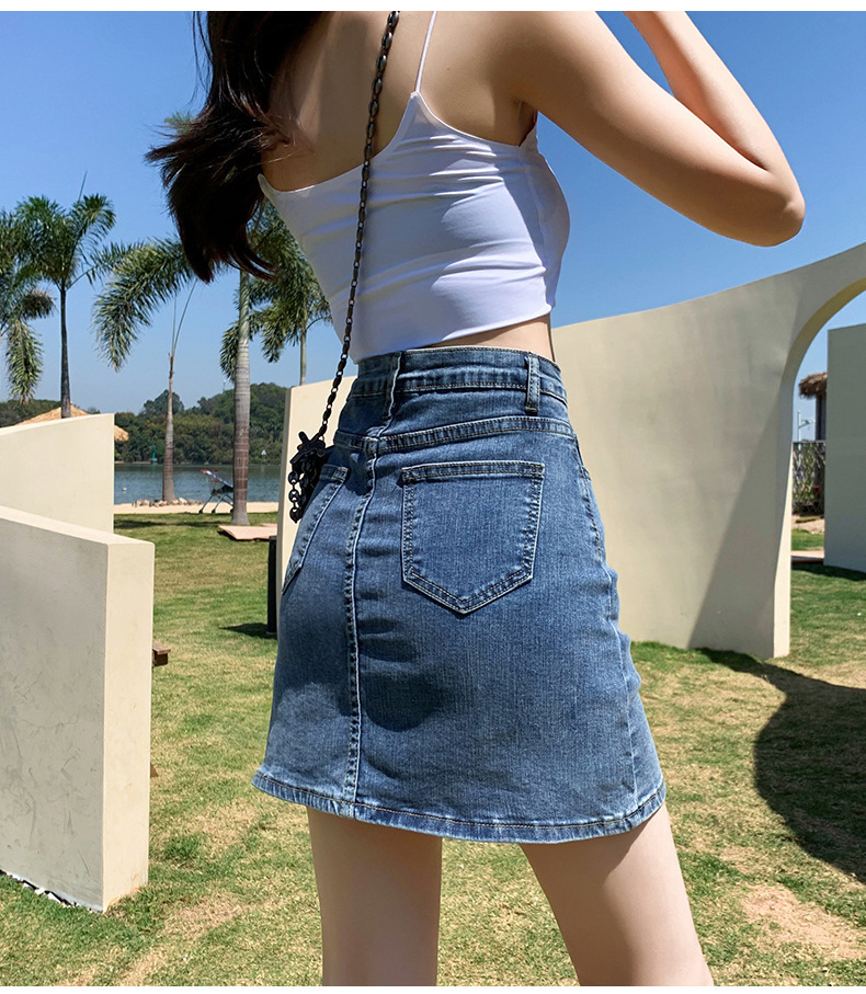 데님 짧은 치마 여자 2024 년 여름 새로운 높은 허리 슬림 핏 힙합 스커트 스트레치 미끄럼 방지 바지 스커트스토어 가기