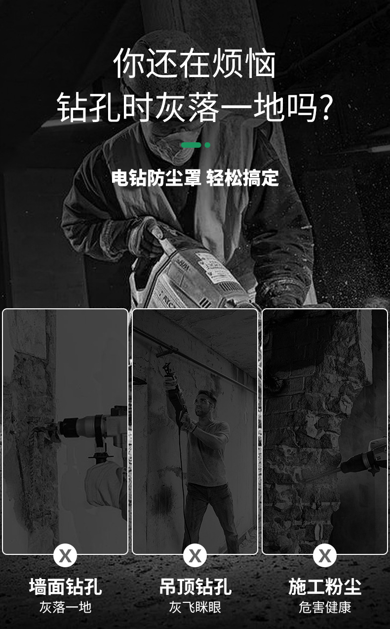 • [업그레이드 모델] 3세대 더스트커버는 160mm 드릴비트(3개)에 적합합니다.