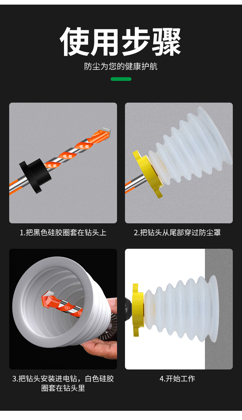 • [업그레이드된 투피스 세트] 3세대 더스트커버는 150mm+160mm 드릴비트에 적합합니다.